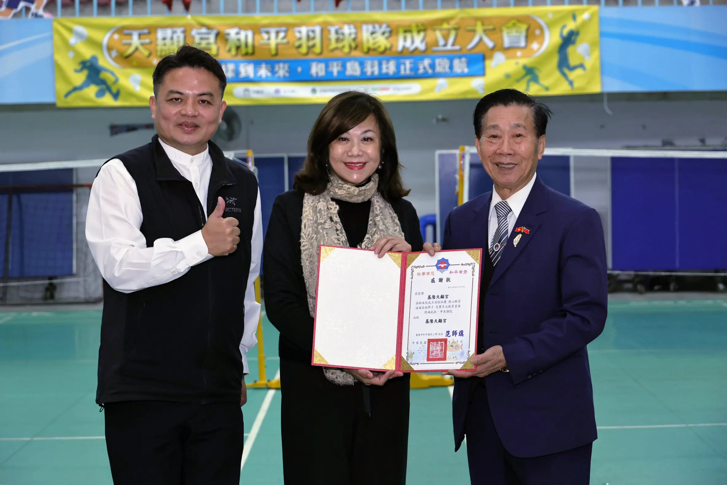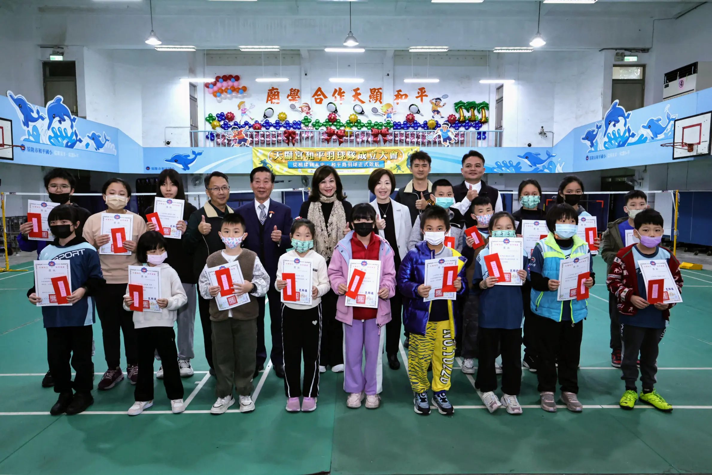 基隆天顯宮投入資源 推動「廟學合作」助和平國小成立羽球隊