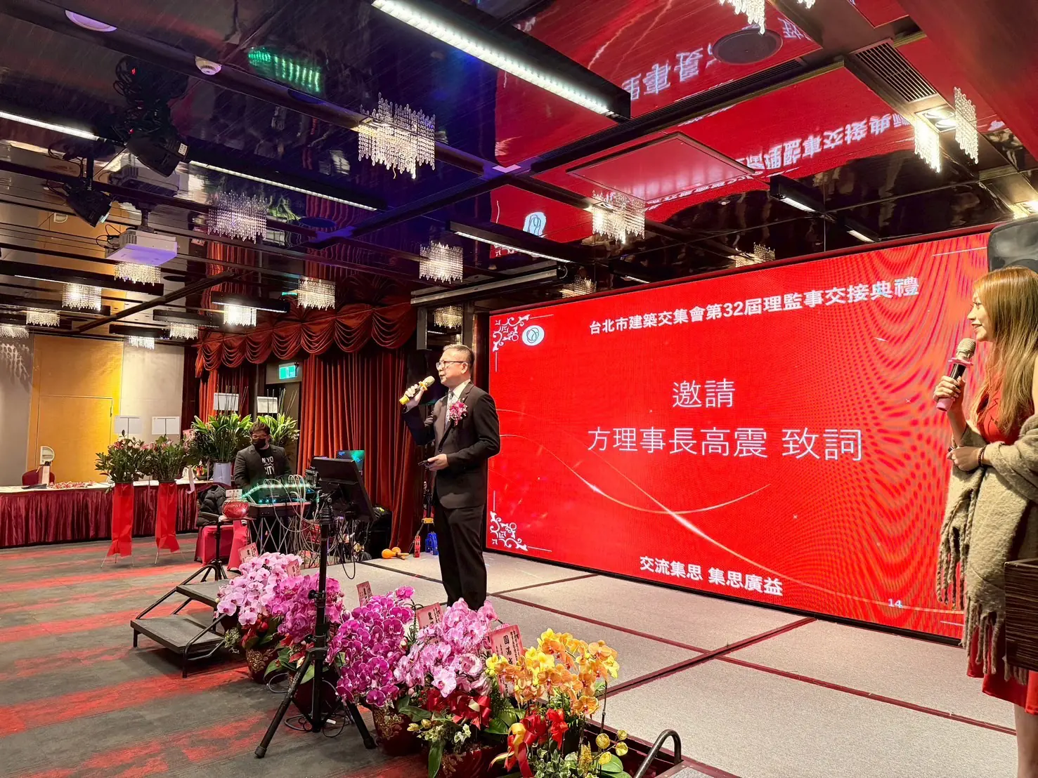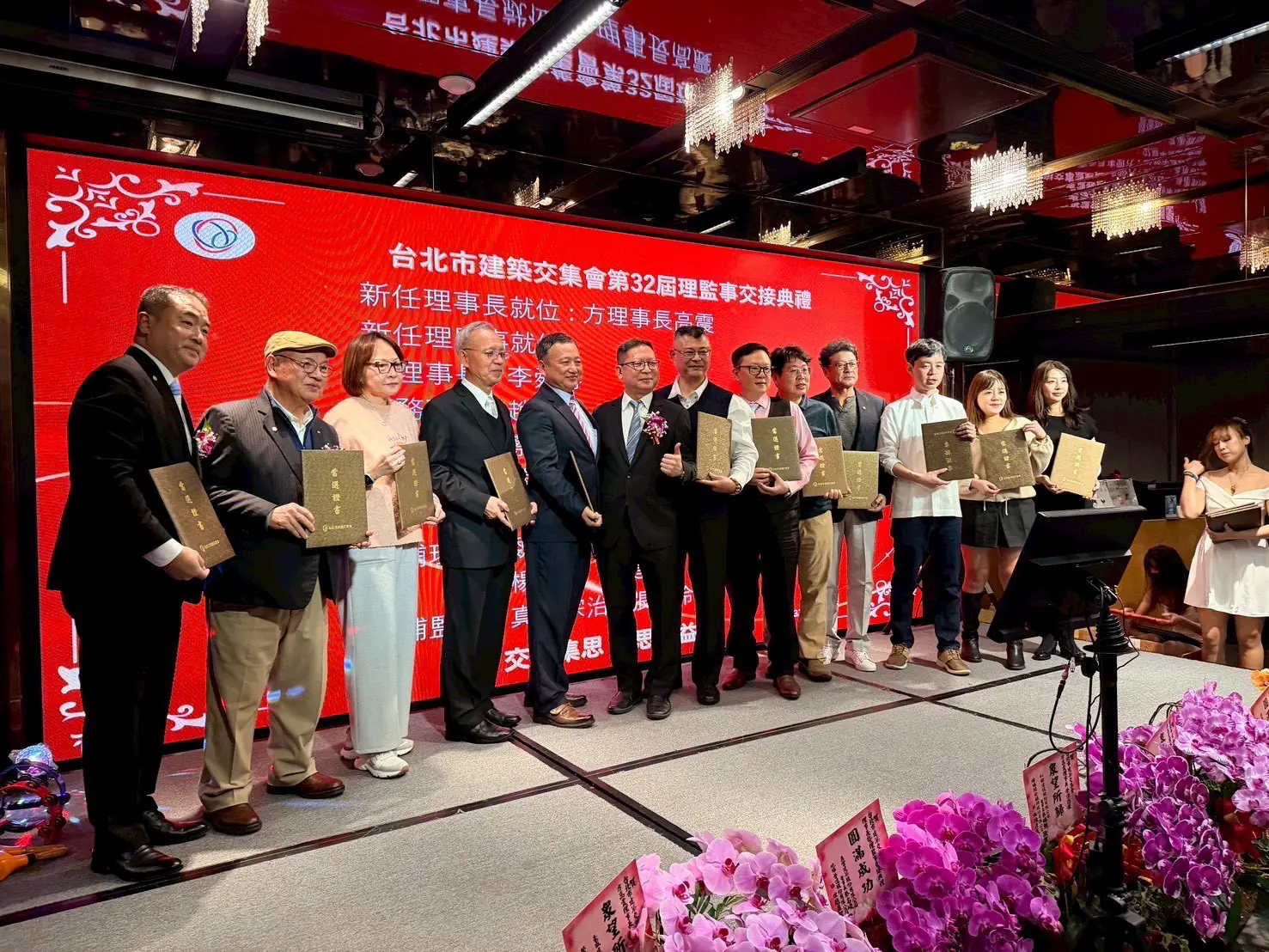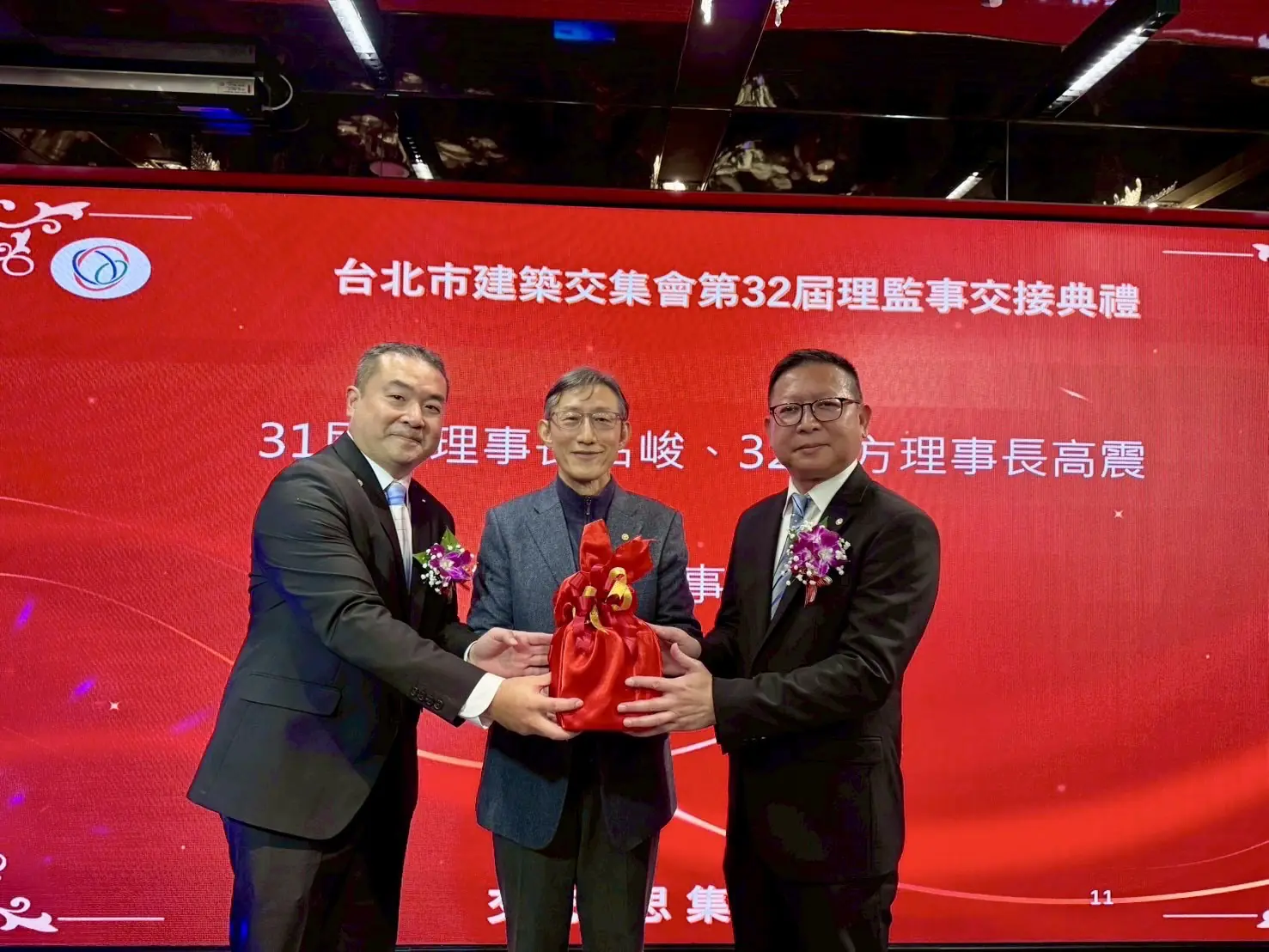 社團法人台北市建築交集會第32屆理事長暨理監事交接典禮,於115年1月22日晚間舉行,交接儀式圓滿完成。新任第32屆理事長方高震,正式自第31屆理事長蔡名峻手中接下重任,並由榮譽理事長簡性琦監交,象徵會務順利傳承,邁入新階段發展。