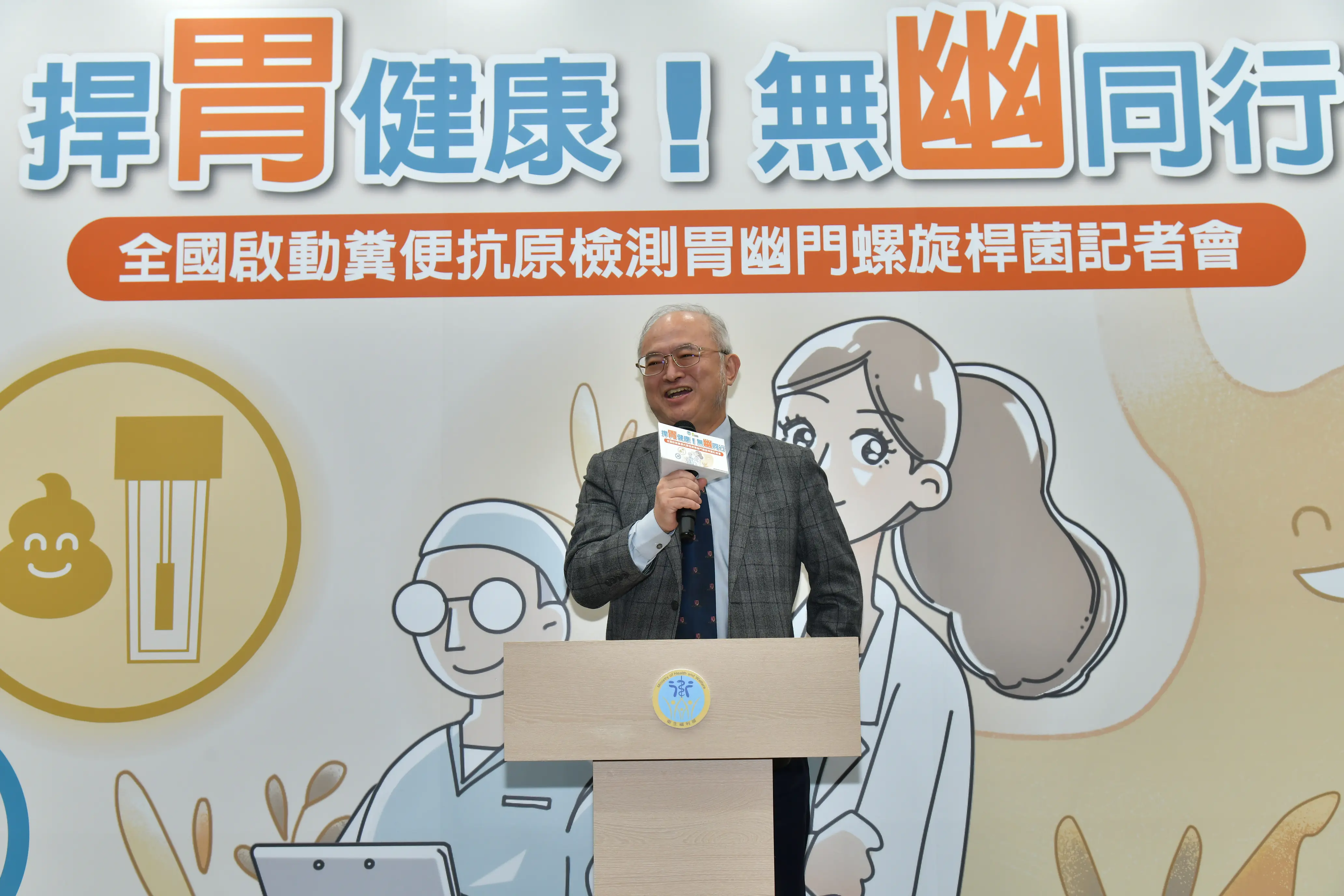 胃癌約有8至9成是幽門螺旋桿菌(HP)感染引起!為降低國人胃癌發生率,衛生福利部自115年1月1日起,全面提供我國45歲至74歲民眾終身1次公費「糞便抗原檢測胃幽門螺旋桿菌」服務,衛生福利部石崇良部長誠摯邀請符合篩檢資格民眾來接受服務!