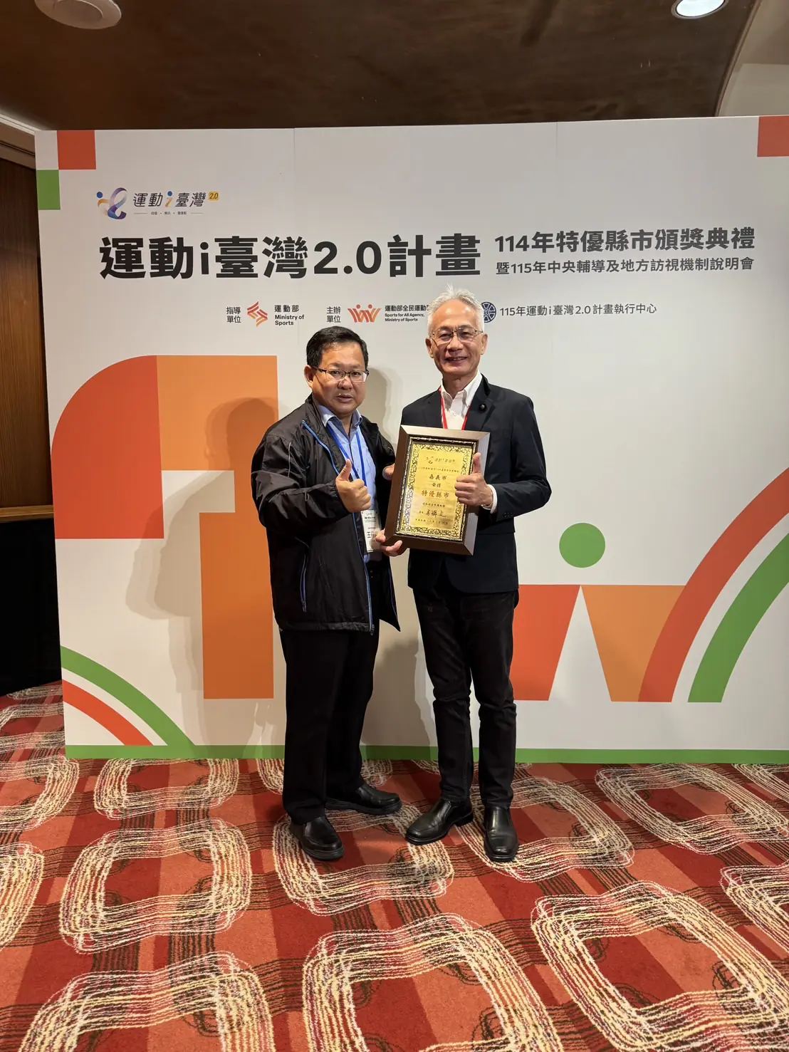運動部全民運動署今(28)日於臺北遠東香格里拉飯店辦理「114年運動i臺灣2.0計畫特優縣市頒獎典禮」,嘉義市已連續五年獲得績效特優縣市獎,成效卓著,嘉義市政府由教育處郭添財處長代表黃敏惠市長出席接受表揚,彰顯運動是嘉義市的城市DNA精神。