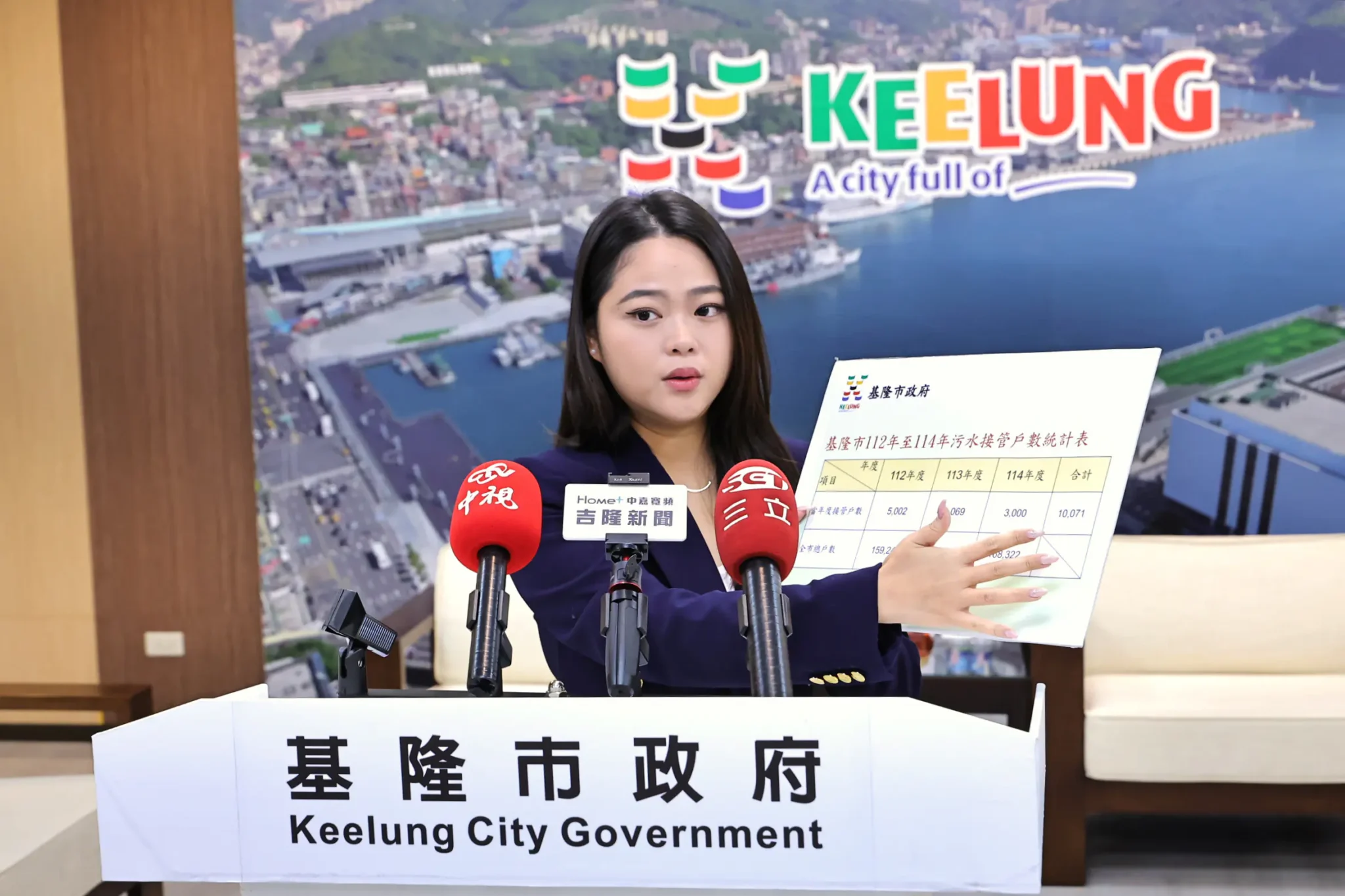 針對近日外界質疑謝市府上任三年,污水管接管率問題,基隆市政府副發言人鍾明今(29)日召開記者會拿出數據說明,強調三年已接管戶數共10,071戶,約占全市總戶數6%,並提及未來進行接管作業時,市府將召開公聽會或政策說明會,由市長親自說明過去進度及未來工作方向。