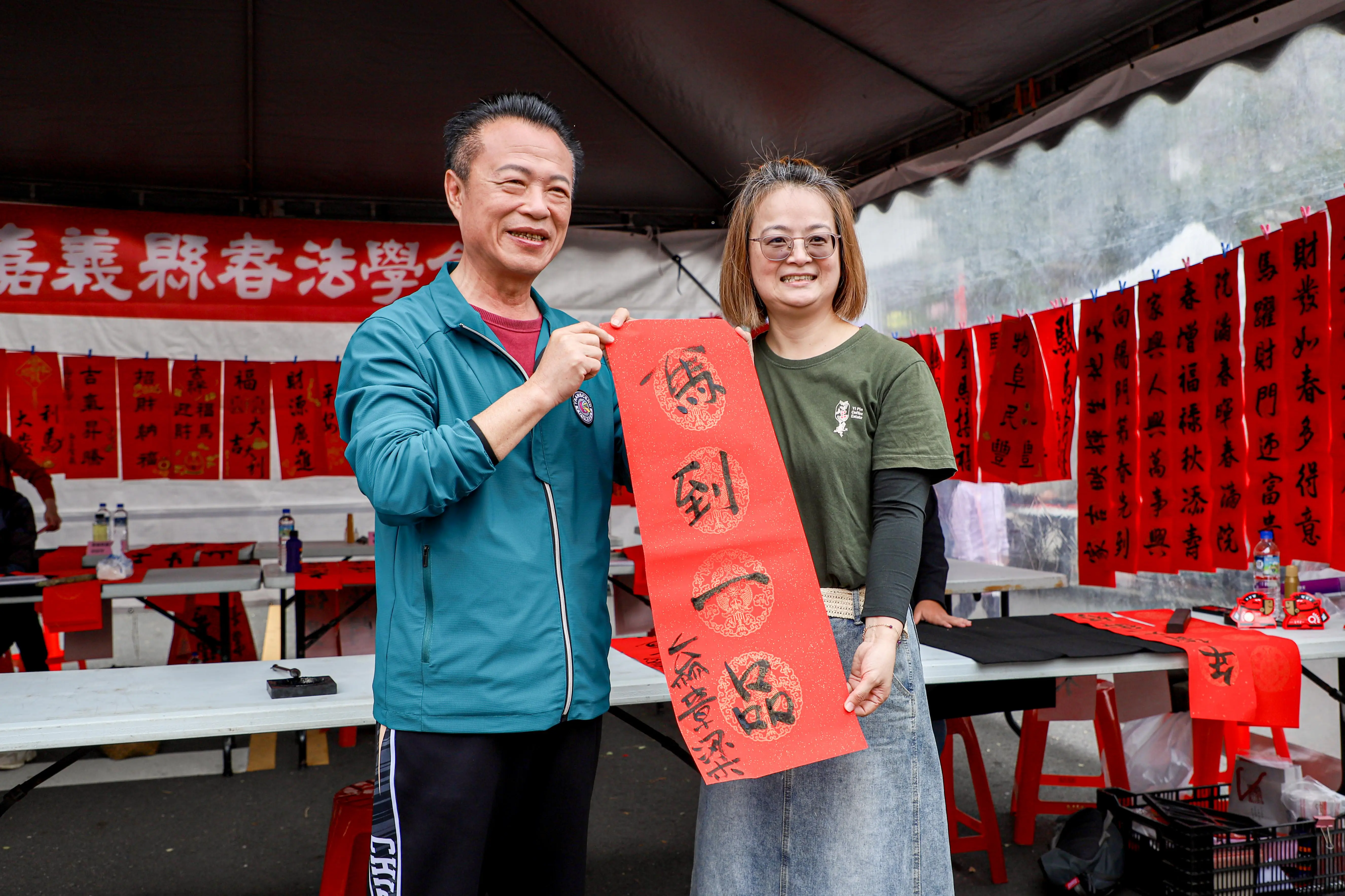 縣長翁章梁31日來到市集與書法大師楊貴真一同揮毫寫春聯,並發放馬年小紅包,為年貨大街揭開熱鬧序幕,吸引許多民眾排隊領取。