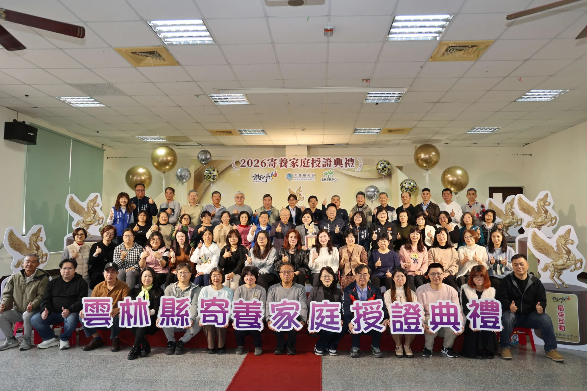 為感謝並表彰長期投入安置兒少照顧工作的寄養家庭,雲林縣政府與雲林家扶中心今(2/1)日在虎尾鎮多功能活動中心舉辦「115年度寄養家庭授證典禮」,縣長張麗善、縣府社會處長林文志、虎尾鎮長林嘉弘、議員黃美瑤、雲林家扶中心陳燦勲主委、廖志文主任等共同向默默付出的寄養家庭致上最誠摯感謝與肯定。