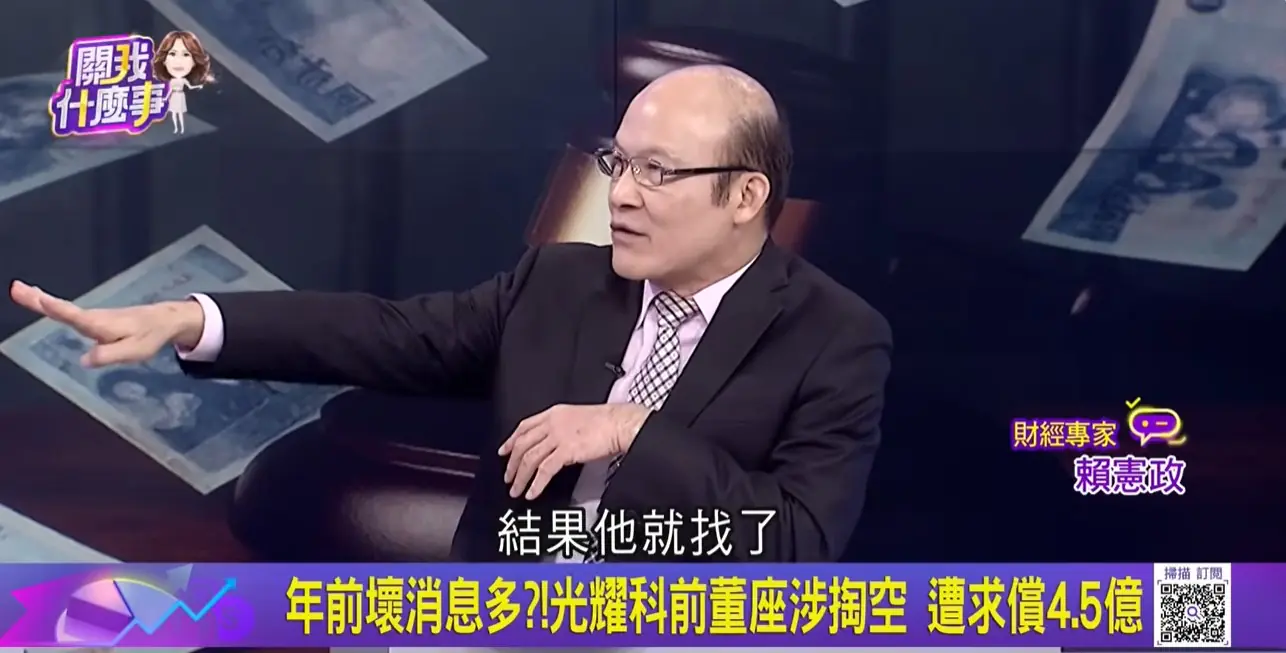 此篇文章最開始出處為: 光耀科疑涉掏空 賴憲政、黃世聰示警境外子公司內控風險