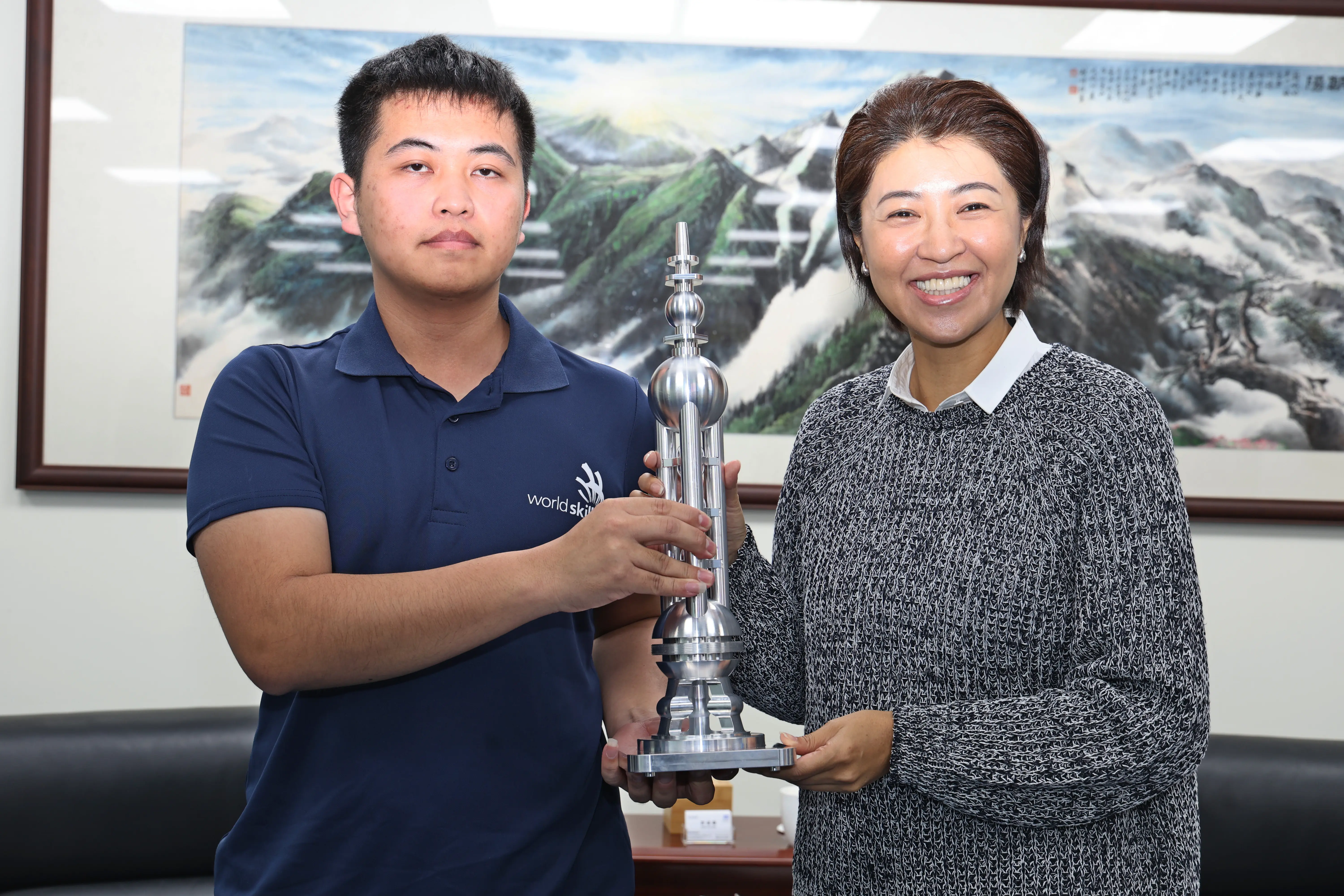 榮獲亞洲技能競賽金牌的吳德龍特別將比賽作品「上海東方明珠塔」模型獻給許縣長,許縣長開心說,很高興草商師生讓世界看見南投縣在技職教育發展的成果及深厚實力,每一個得獎的背後,是長時間的投入、無數次的反覆練習,以及對專業技術的堅持與熱愛,這樣的堅持與行動力值得推崇與讚佩,未來,她希望透過各種不同資源的挹注、老師的關心、還有政府支持,讓更多學子能夠在國際發光發亮,並且進一步把他們的所學、所長貢獻給社會國家。