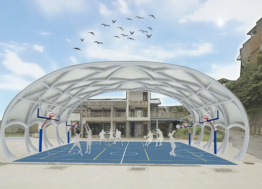 暖暖高中校長單益章指出,本案為依法取得建照的半戶外球場工程,基地位於校內耀武館前空地,整體設計採鋼構結構搭配薄膜屋頂,具備遮陽、避雨、良好採光與通風等特性,適合籃球、排球等球類運動使用,同時亦可作為校內集會、典禮及多元教學活動空間,有效紓解校內大型活動場地不足問題。