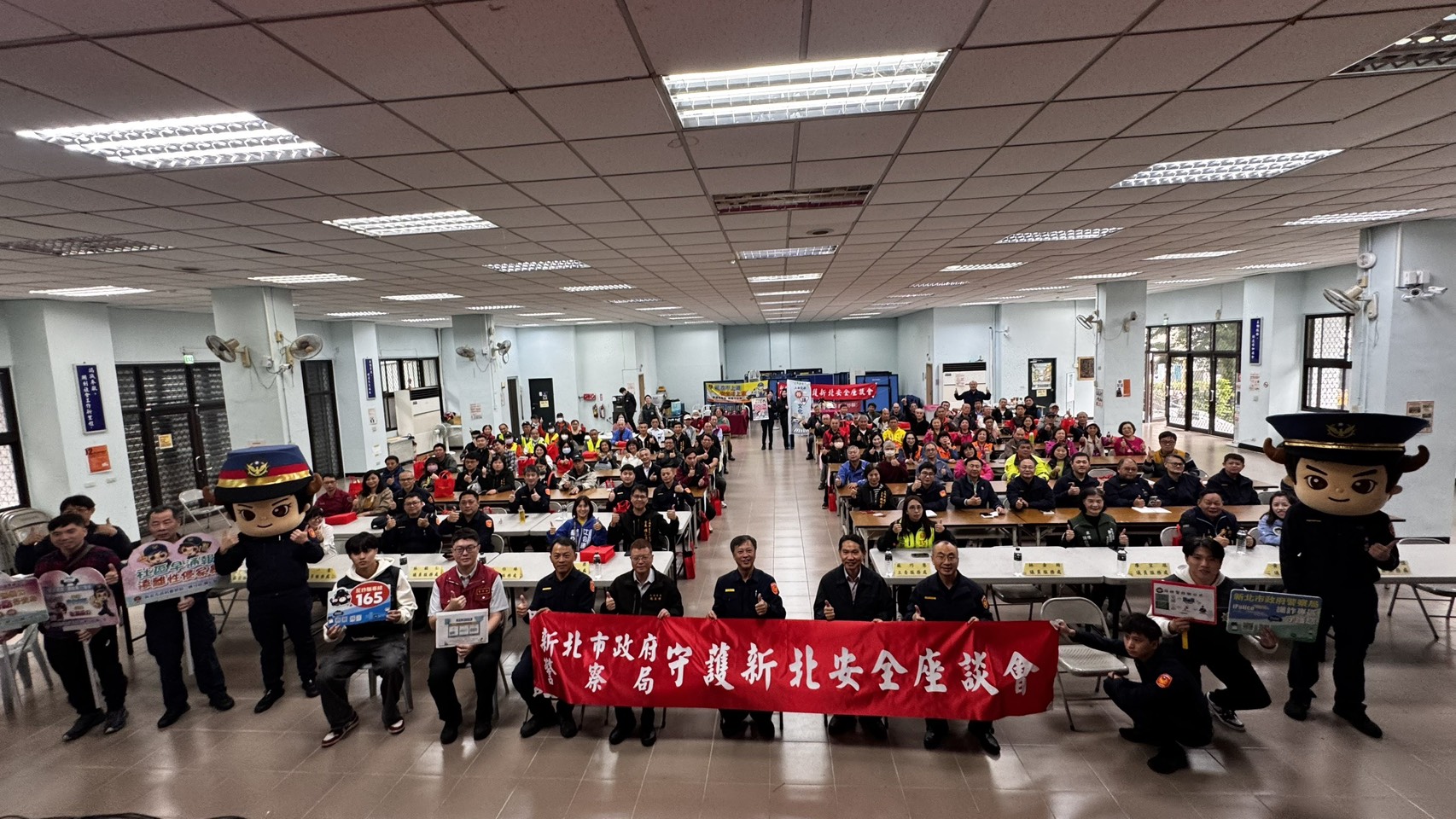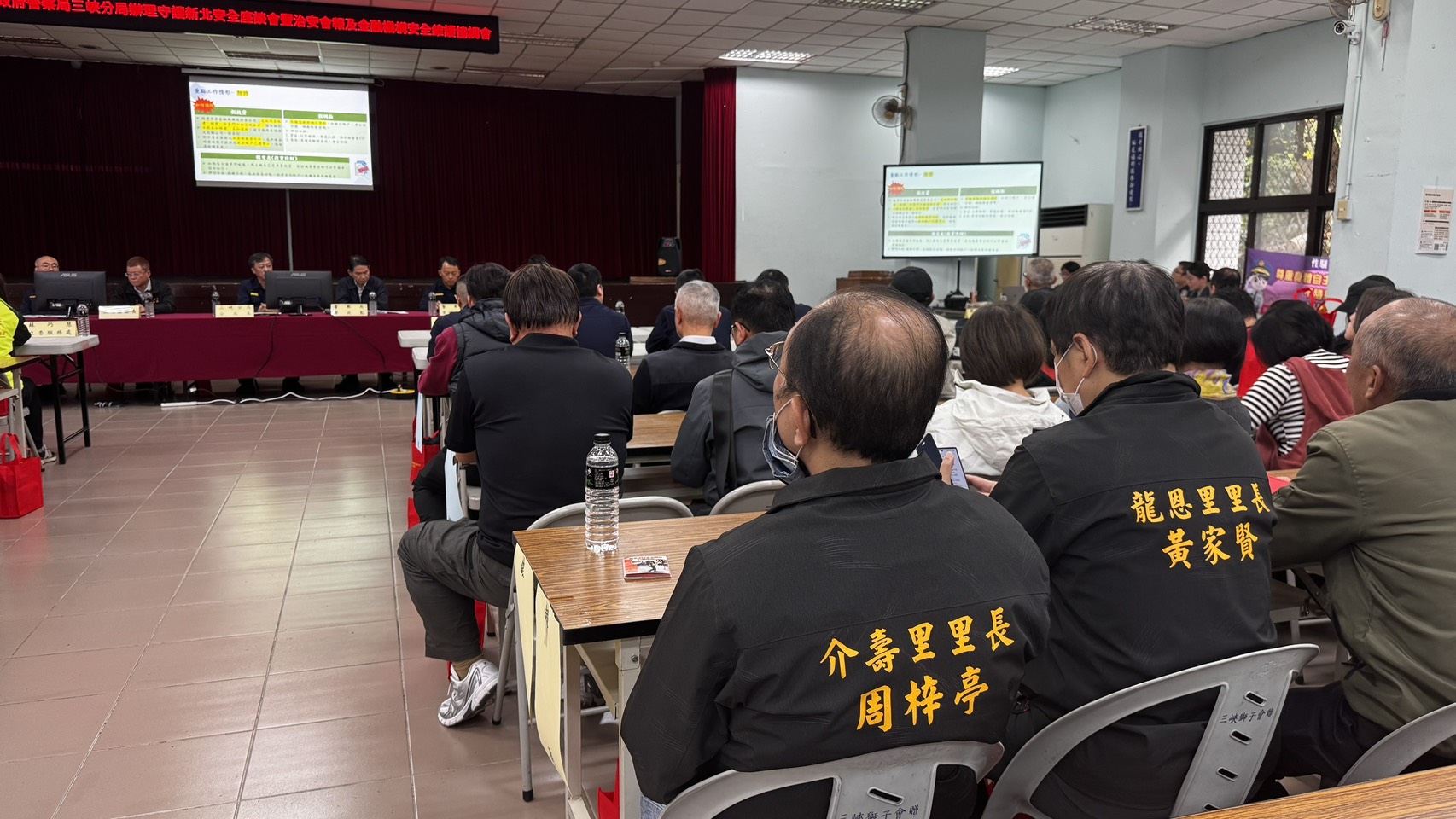 新北市政府警察局三峽分局昨(5)日下午在三峽區長青市民活動中心舉辦「守護新北安全座談會暨治安會報及金融機構安全維護協調會」,邀集三峽區區長、立法委員及市議員服務處主任、里長、學校及金融機構代表、民力夥伴與市民朋友共同參與,透過面對面交流,凝聚社區安全共識,攜手守護新北市民生命與財產安全。