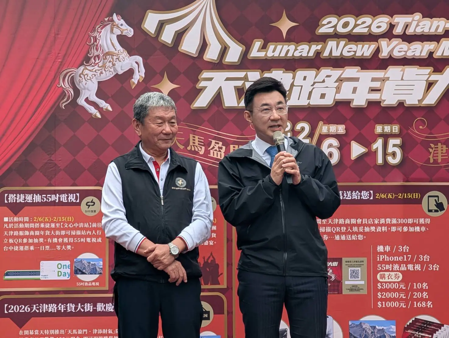 經發局長張峯源指出,天津路服飾商圈三十多年來陪伴無數市民迎新送舊,是中台灣最具代表性的服飾街之一,不僅承載濃厚的年節記憶,也展現台中商業的活力與韌性。近年經發局持續陪伴商圈升級轉型,導入數位抽獎系統、行動支付及數位行銷工具,讓傳統批發型商圈逐步邁向兼具數位力與永續意識的「綠色商圈」,張局長同時也感謝天津商圈長期配合物調券、台中購物節等市府政策,共同活絡城市消費動能。