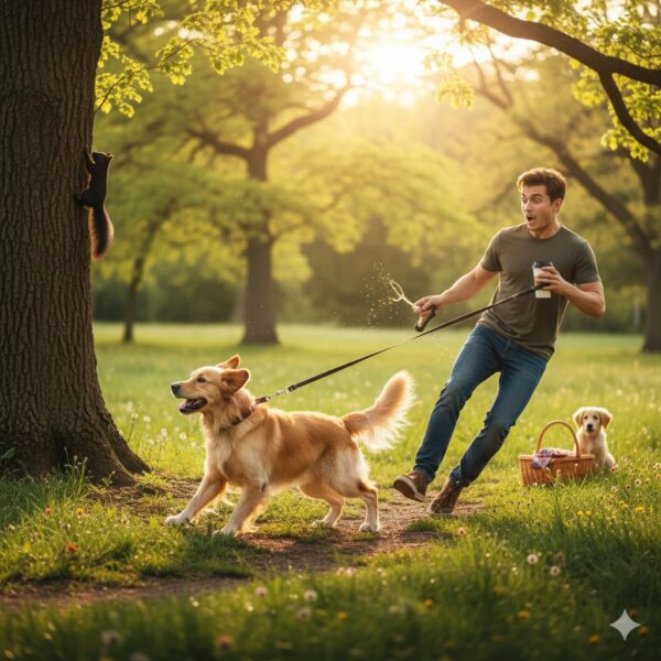 狗狗卻忽然往前衝、拉繩、情緒變得很高。