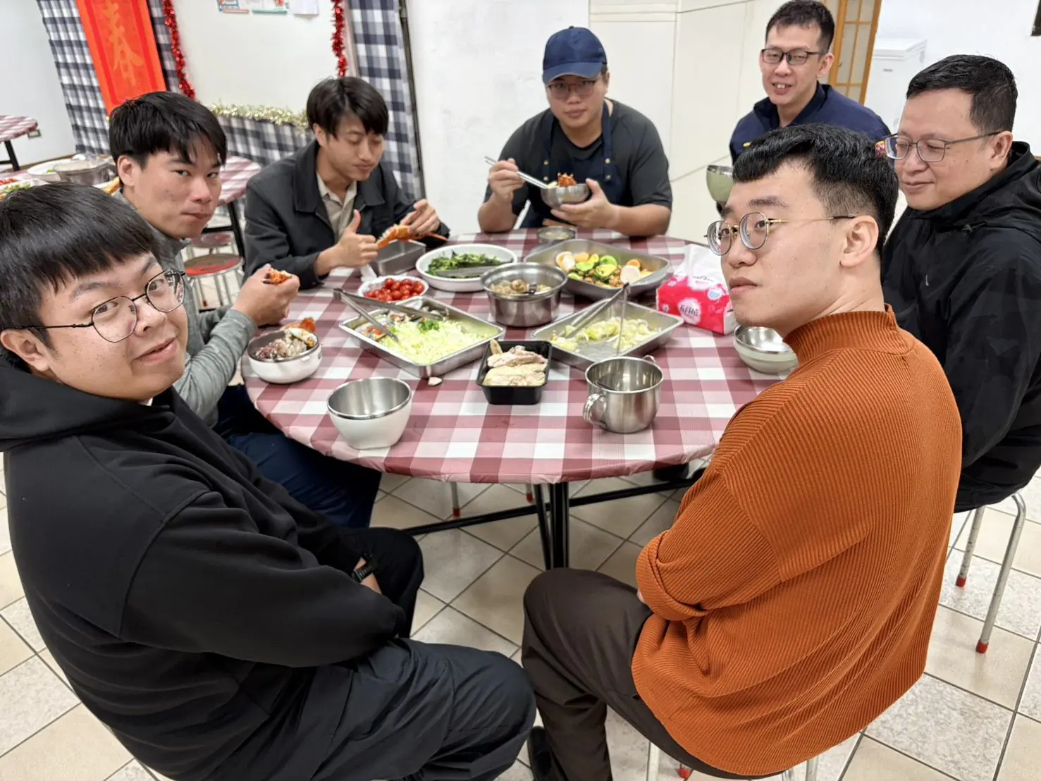 負責掌廚的城中食堂工友林麗秋分享準備年菜的心情表示:「今天特別為大家準備這麼豐富的菜色,就是希望同仁忙了一整天後,能坐下來好好吃頓飯、補補元氣;看到大家吃得滿意、露出笑容,我真的很滿足,也希望這一餐能為大家帶來溫暖與力量,大家多吃一點。」
