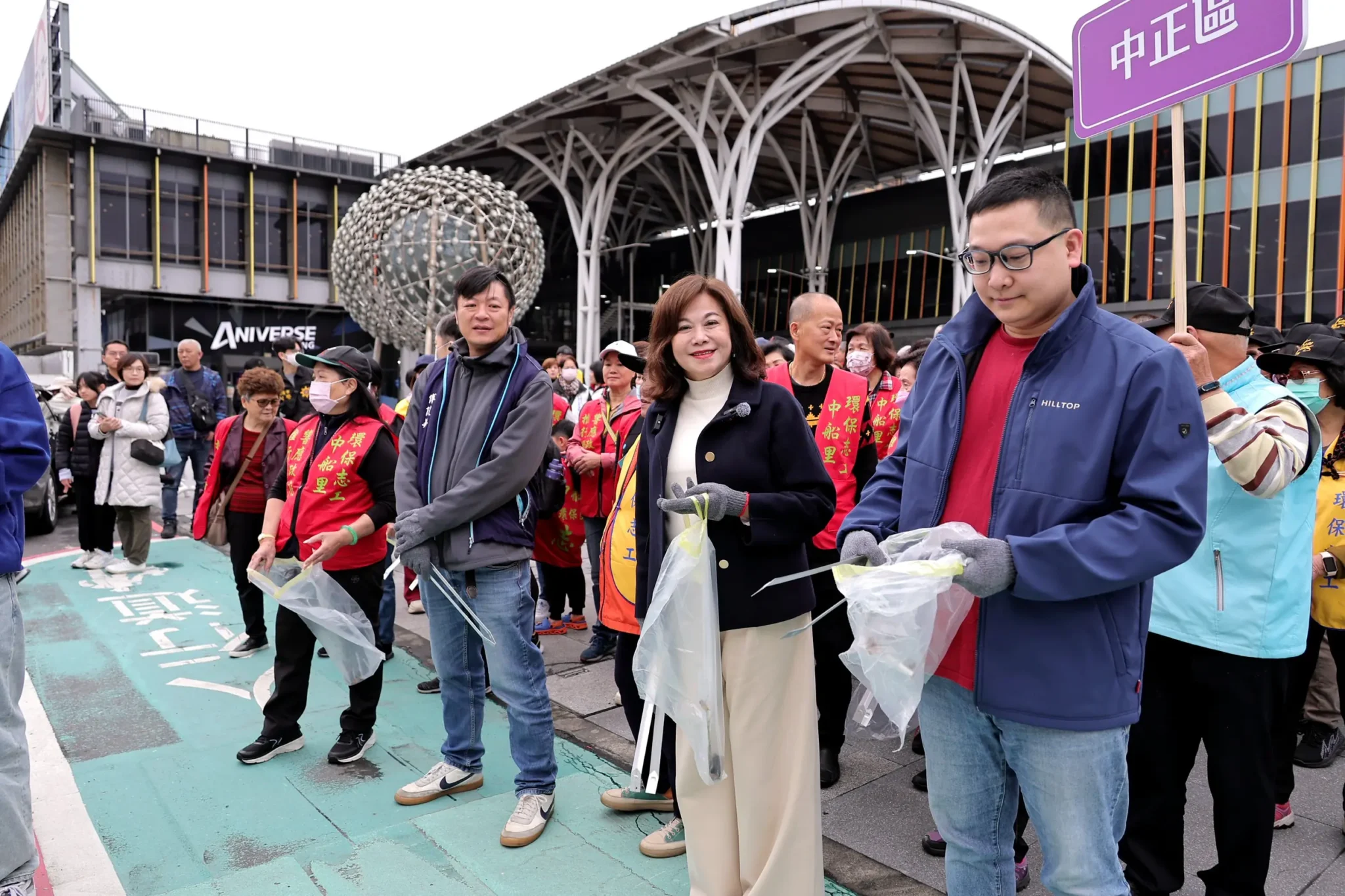 誓師儀式結束後,副市長邱佩琳隨即戴上手套,親自帶領各區清潔志工代表兵分多路,針對市中心熱點、觀光景點及巷弄死角展開環境整頓行動,重點清除菸蒂、積水容器及違規張貼的廣告物,以實際行動落實環境清潔。