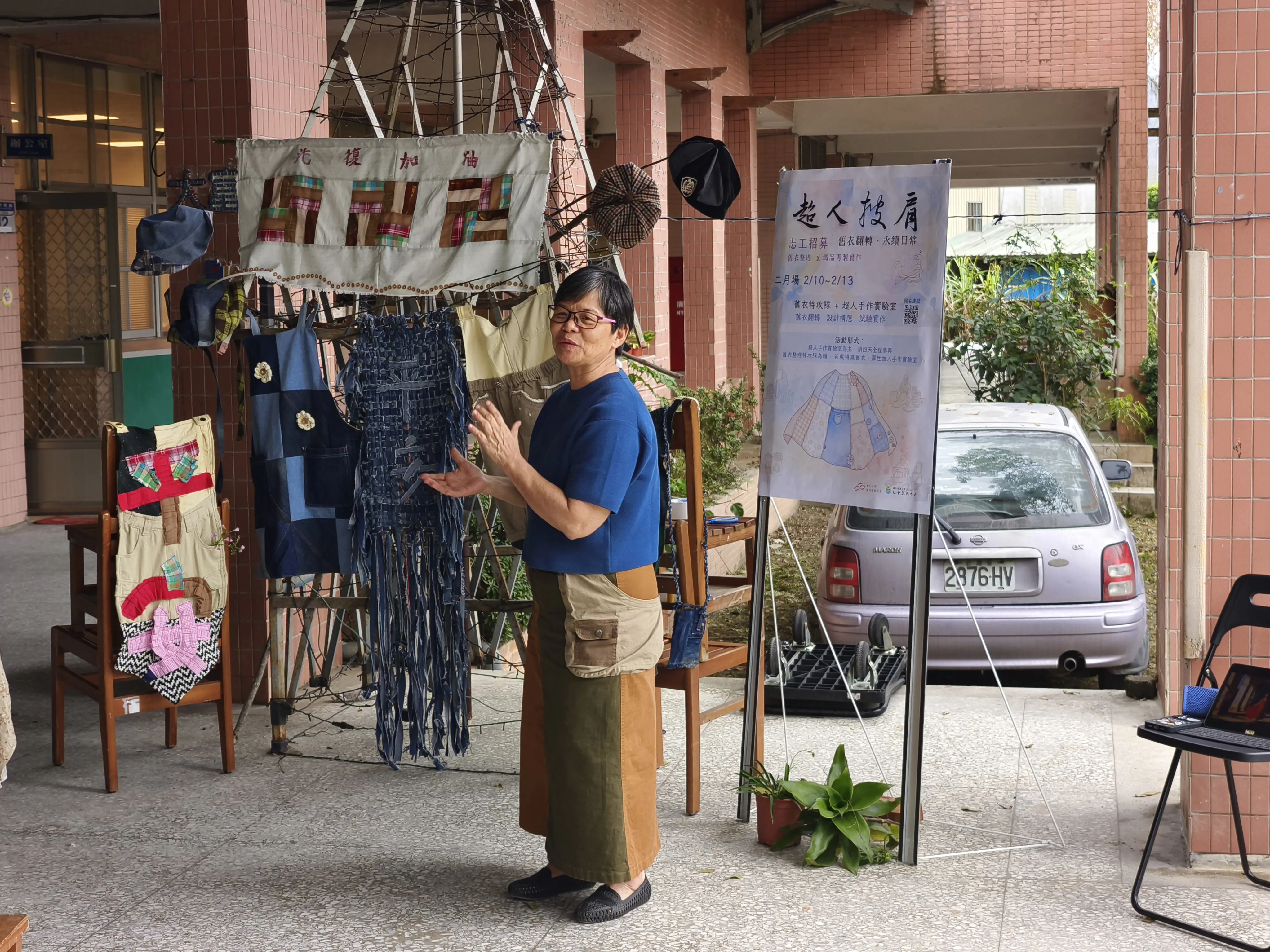 二月場則進入「再生設計實作」——由輔仁大學織品服裝學系專業團隊導入布料判別與再製評估,分組進行設計發想與創作,讓舊衣從倉儲壓力轉化為具功能與象徵意義的「超人披肩」。製作門簾、窗簾、桌巾、帽子、圍裙、編織飾品等實驗性質的作品,充滿了創意與生命力,讓所有人感到興奮與想繼續參與。