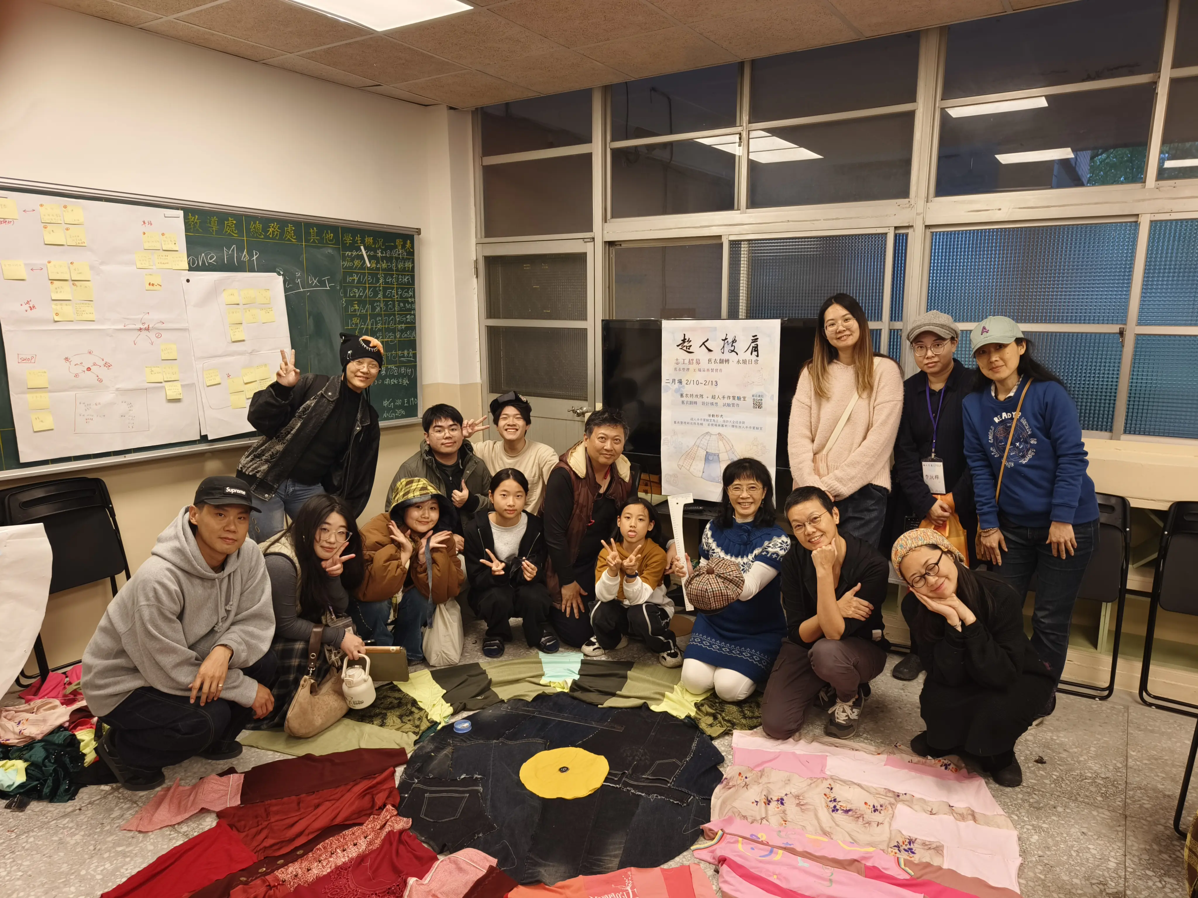 農曆年前夕,曾於2025年秋天洪災期間協助花蓮光復鄉的超 人們,默默的再次回到光復,以兩場密集工作坊解決「善意過剩」的舊衣捐物,兩梯次動員40餘人,埋首於堆積如山的舊衣中,從分類到再製,共同的目標是「逆轉勝」:不僅是「處理掉」舊衣,而是與在地團隊共同研發創新重建治理與療癒模式。在東華與輔仁兩所大學幕後規劃下,與光復在地的花蓮縣啄木鳥全人發展協會攜手啟動「舊衣再生」翻轉方案,試圖將無用舊衣成為重建光復的微型產業基礎,無法用於銷售或再製的舊衣,將與工研院研發「再製」布料,作為創新用途的布材。兩次工作坊共計處理了約20個棧板的舊衣,此方案啟動後,預計將延續至少三年研發創新,做為光復重建可兼顧創新循環管理與社會性處方療癒模式的典範。