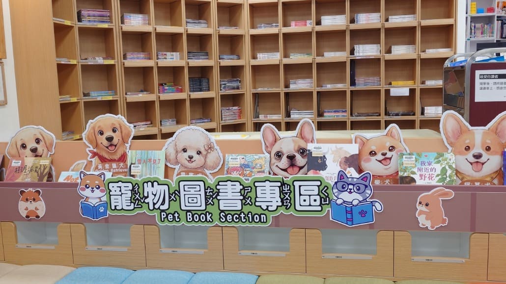 林口區李科永紀念圖書館特別設立「寵物圖書專區」,內有大型狗狗玩偶陪伴,搭配毛寶貝立體造型溫暖空間以及擁有多元寵物主題館藏書籍,讓孩童能自然沉浸於寵物相關知識,該圖書館首度請動保處到場勘查,透過主題式海報布置場地,協助融入正確動物保護觀念,例如帶犬貓外出須繫繩或使用外出籠裝載等寵物相關議題,深化孩童愛護動物觀念,引導樂讀力從日常中形成,從品種特性、營養健康管理到行為訓練,陪伴新手與資深飼主從「養活」走向「養好」。