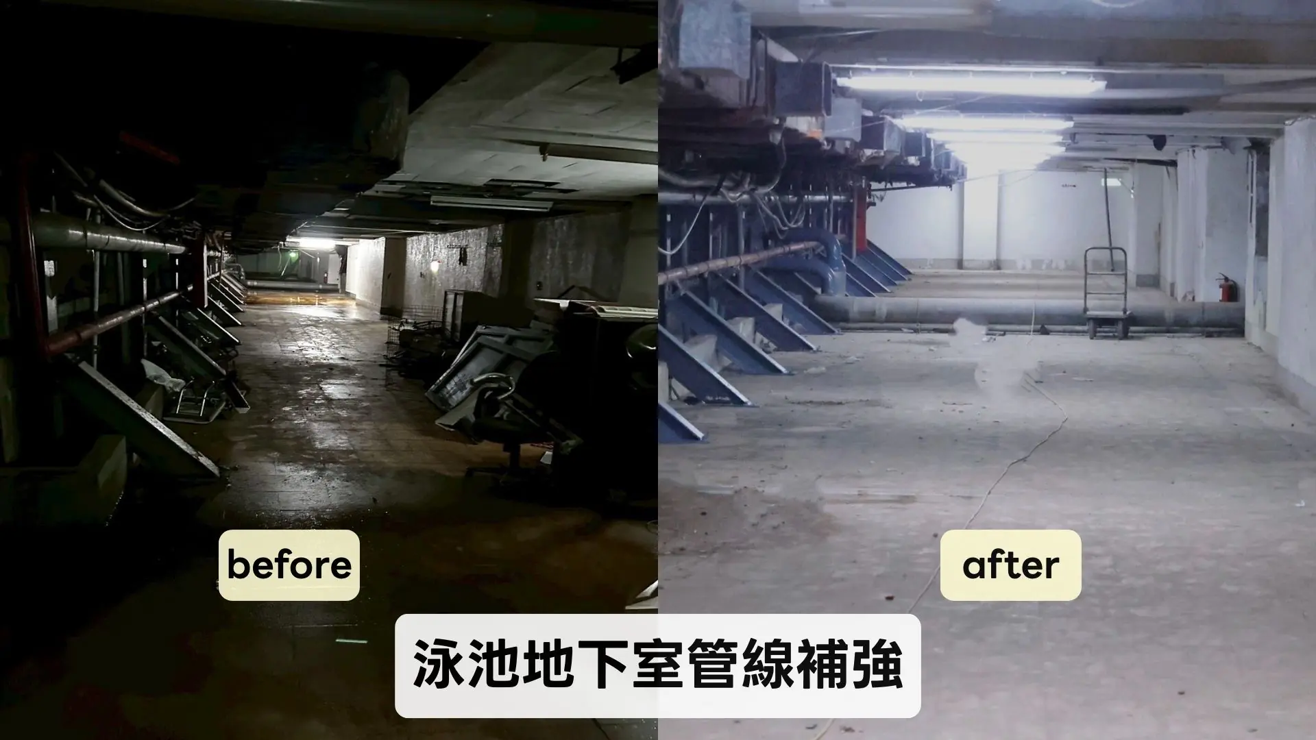 基隆市立體育場林柏樹場長表示,本次修繕工程著重於場館結構補強與使用安全性,大幅改善場館體質,包括地下室管線混凝土裂縫灌注與補強、泳池玻璃窗拆除封閉,以及為了解決長期滲透漏水的問題,在地下二樓地坪增設排水溝與不銹鋼板;內部設施部分,進行觀眾席磁磚修補、並大幅提升泳池側面照明亮度,去除市立游泳池既往幽暗的印象,更在泳池新增跳水台,以符合未來舉辦中小運選拔等賽事標準,讓場館機能更加完善。