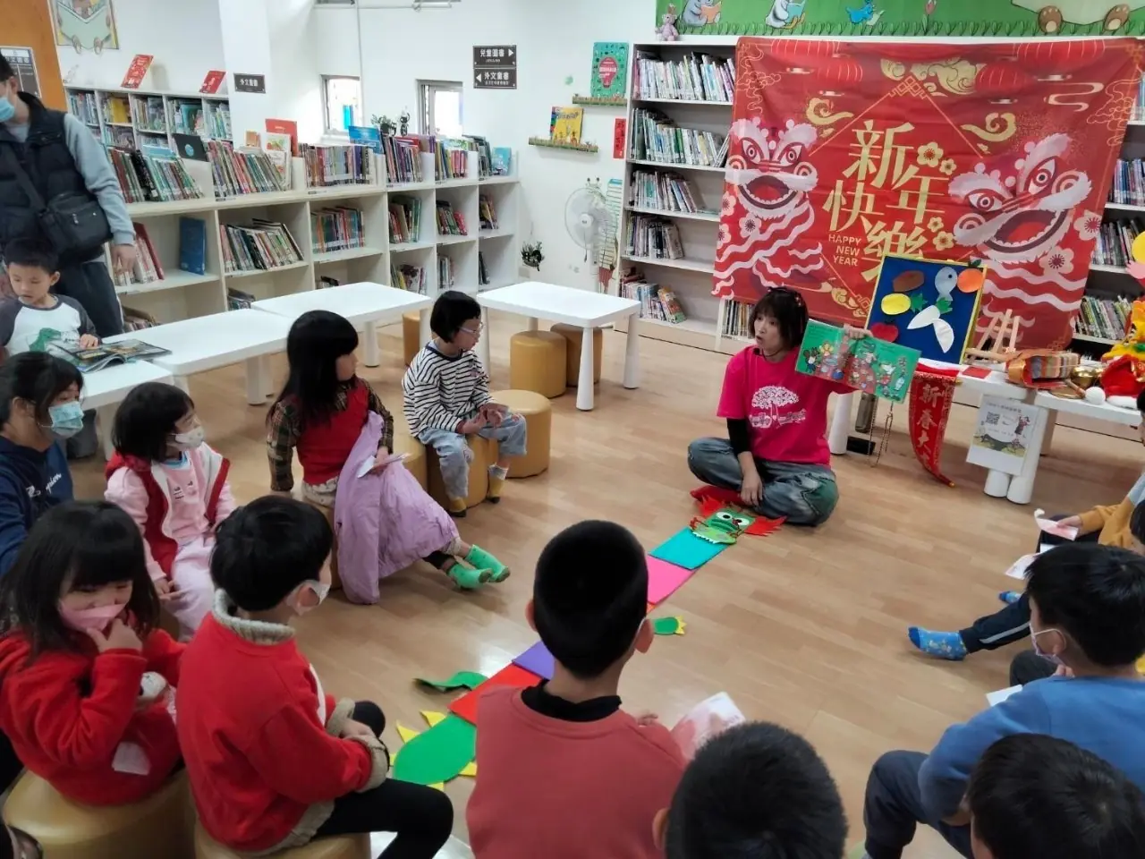 每逢說故事活動,吸引許多大小朋友到圖書館聆聽