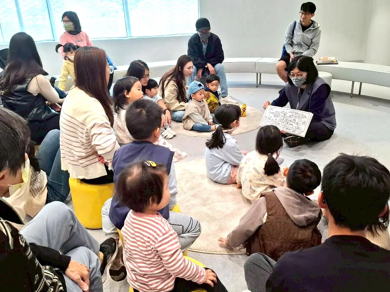 台中市台中故事協會志工以生動語調與豐富表情,帶領孩子進入書本世界