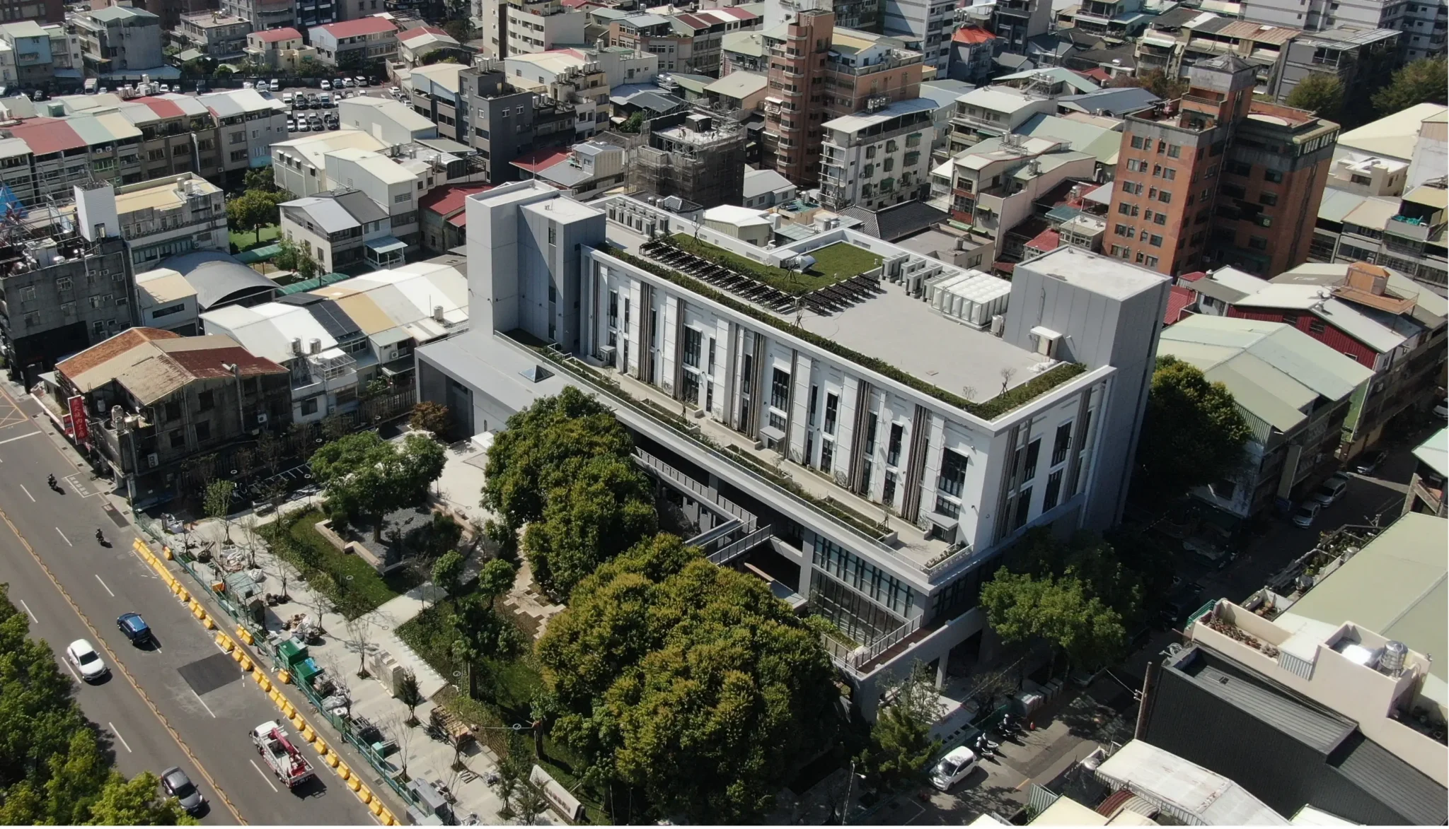 陳局長進一步說明,園區工程挑戰性高,為保留老樹與既有建築結構,設計與施工過程皆須精細規劃,讓自然生機與現代構造和諧共存。此工程曾榮獲「第25屆國家建築金質獎」肯定,展現市府對公共工程品質的嚴格把關。面對緊鄰審計新村與國美館的高人流區域,建設團隊在施工期間克服交通疏導及基地空間受限等挑戰,在兼顧工程進度與施工品質下順利完成竣工,確保市民擁有安全、舒適的公共空間。