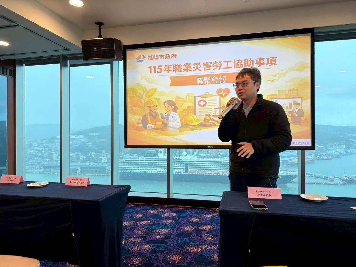 基隆市政府於115年3月9日假基隆長榮桂冠酒店辦理「115年職業災害勞工協助事項—職災重返職場說明宣導、聯繫會報暨個案研討聯合會議」,邀集北北基地區事業單位、工會代表、職業傷病診治專責醫院、認可職能復健機構、就業服務單位、社會安全網及相關專業人員,透過專業分享與跨單位交流,強化區域整合與服務效能。