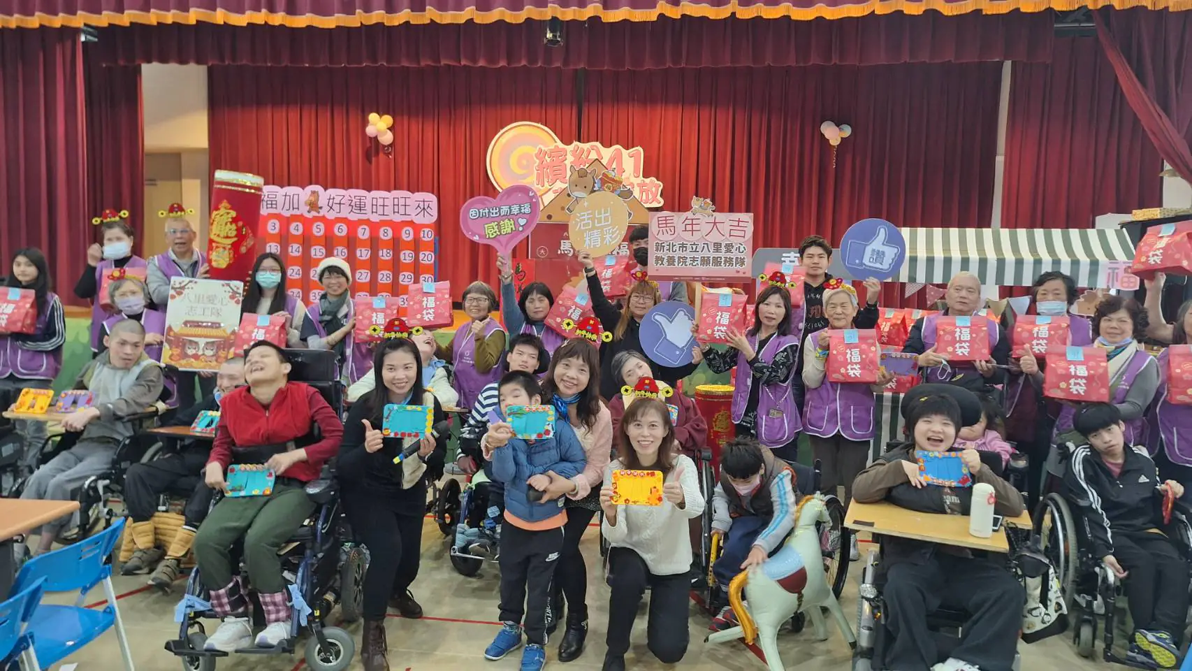為延續新春團圓的喜悅,新北市立八里愛心教養院志工隊日前舉辦「幸福加馬」送福袋活動,邀請院生與志工一同參與。活動安排DIY手作「馬上幸福」相框與抽福袋,讓院生共同珍藏溫暖回憶。