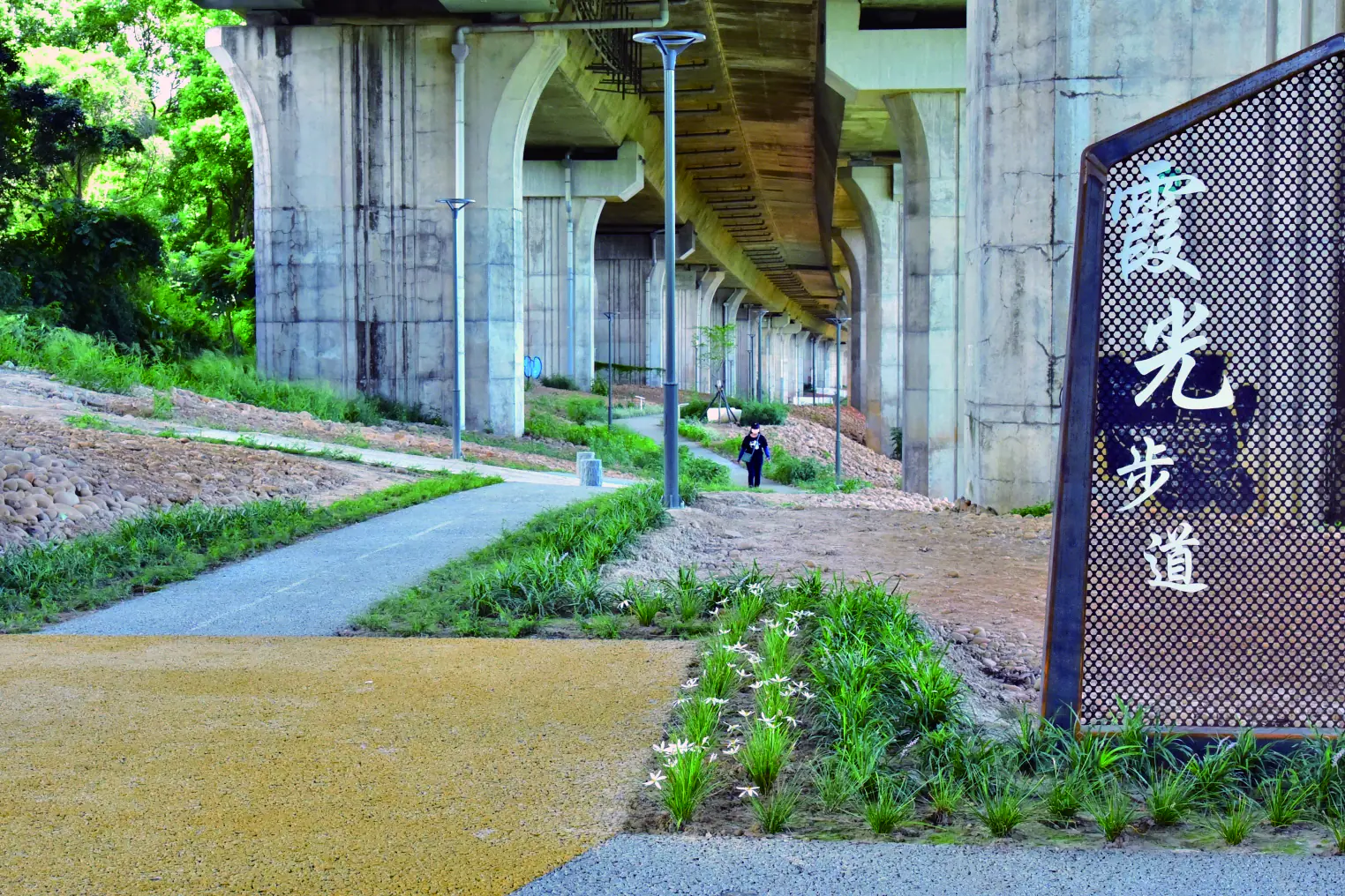由顏莉敏副議長爭取改善、延伸的「沙鹿霞光步道」已正式完工啟用,全長 780 公尺,自臺灣大道六段一路延伸至鎮南路,不僅提供更安全舒適的步行環境,也成為海線地區最新的休閒亮點。顏副議長表示,霞光步道原本是居民日常散步、健行的重要路線,視野開闊,天氣晴朗時更能遠望沙鹿、清水、梧棲等海線城鎮,甚至一睹海景。然而過去部分路段為土路與礫石路面,雨後容易泥濘,夜間更因缺乏照明而增加行走風險。她接獲地方反映後積極向市府爭取改善工程,如今完工後的步道鋪上透水鋪面,行走更安全穩定,也增設夜間照明、休憩座椅、生態廊道與植栽解說牌,提供民眾全天候皆適宜的步行環境。