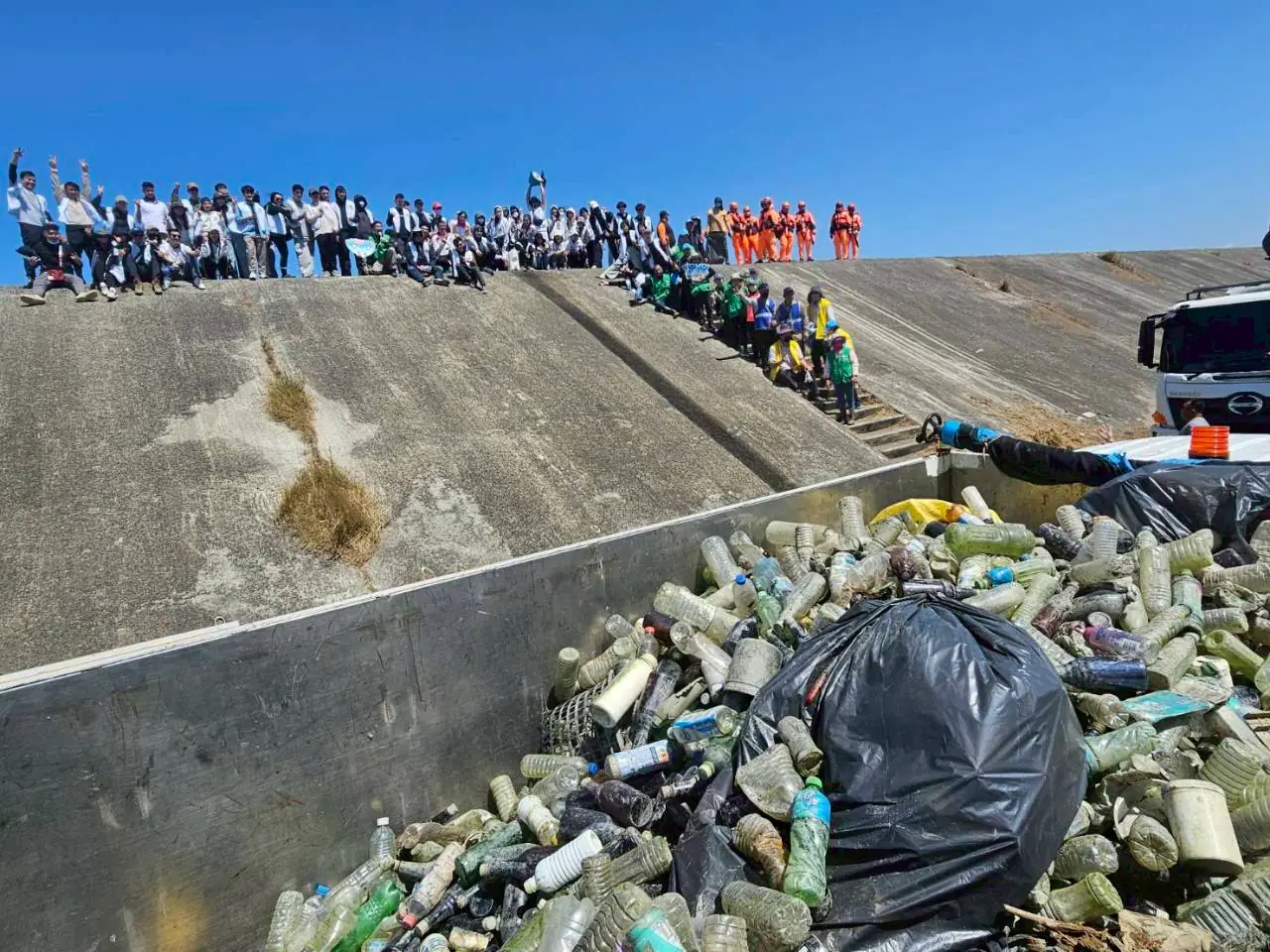 為改善河岸垃圾堆積問題,政府、企業、學校與民間團體昨11日舉辦「青銀淨堤撿塑大行動」,共有130名志工熱情響應,包括及嘉義、雲林環保局、東石鄉公所、水環境巡守隊、信義房屋志工、南華大學學生等單位齊心清理,當日共清除約1068公斤垃圾,包含塑膠廢棄物、玻璃瓶及一般垃圾等。