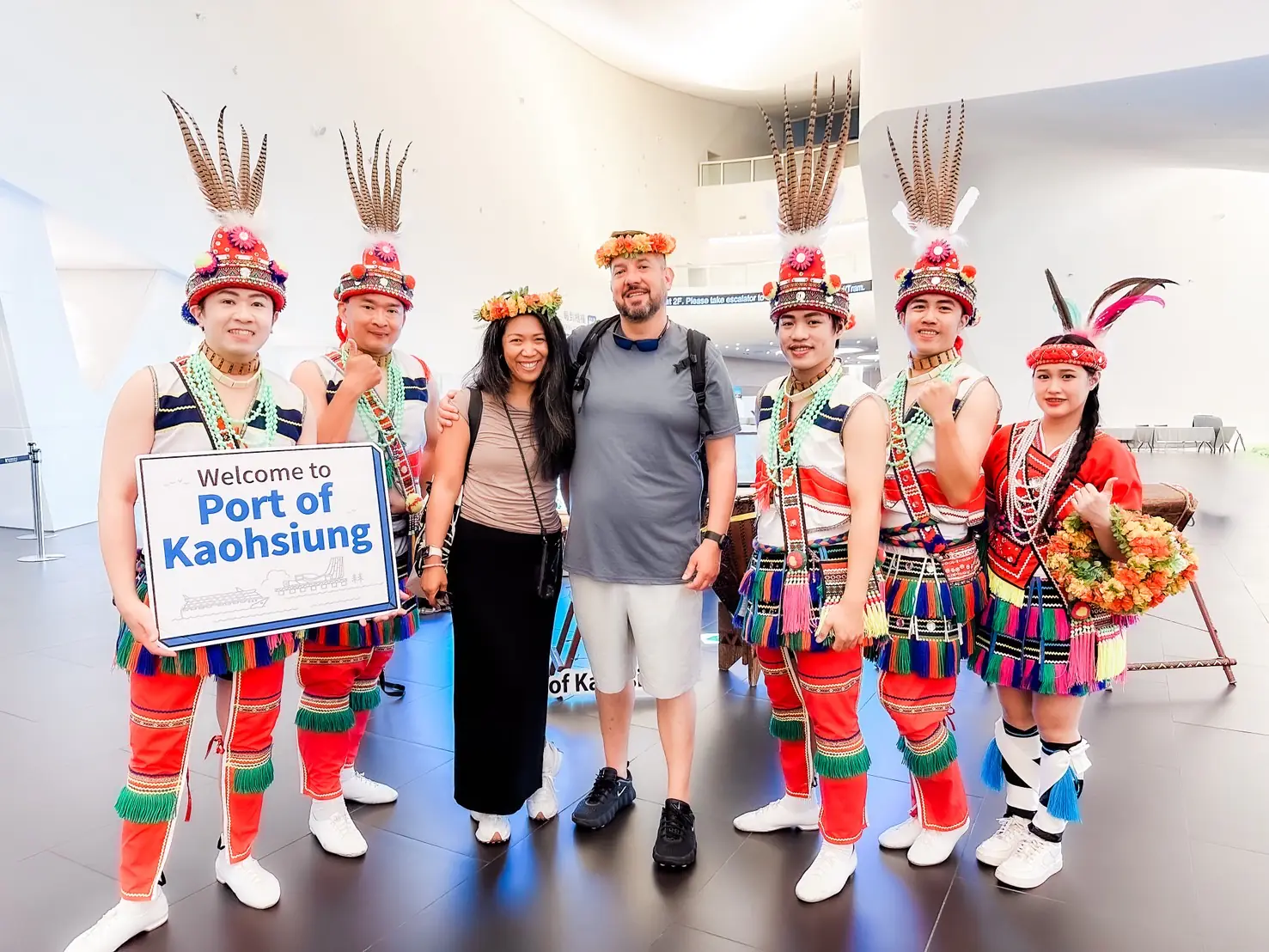 為迎接以歐美籍旅客為主的515位郵輪旅客蒞臨高雄港,高雄港務分公司與高雄市政府海洋局合作安排迎賓活動,現場由原住民迎賓舞蹈揭開序幕,透過熱情洋溢的歌舞迎接遠道而來的旅客,並邀請旅客配戴原住民頭飾,一同參與互動,親身感受臺灣多元文化的魅力。此外,高雄港務分公司亦安排春聯書法體驗,由專業書法老師指導旅客揮毫,並將旅客的英文名字轉換為中文書寫於春聯上,讓旅客將這份富含臺灣特色的文化紀念帶回家。