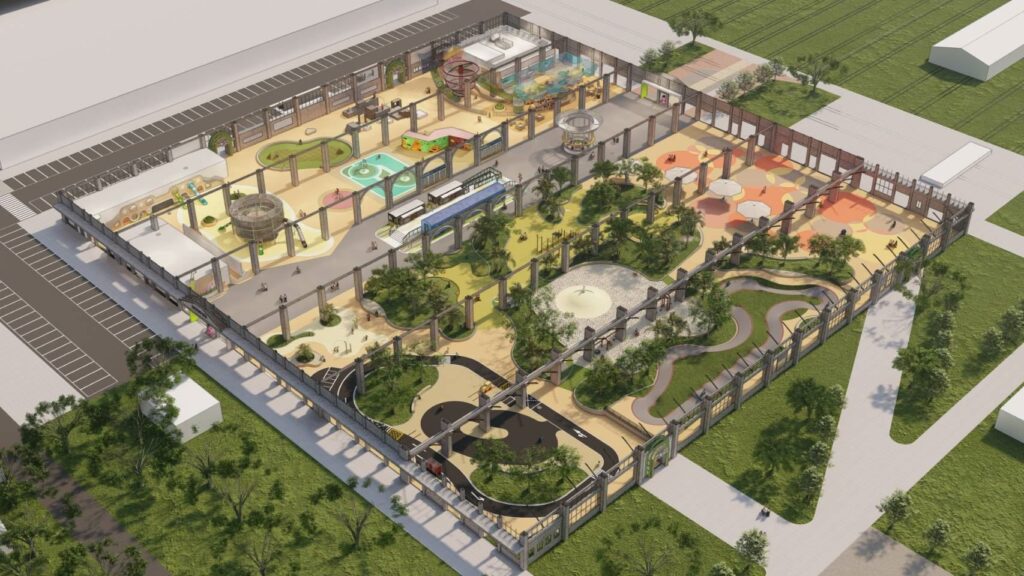 林欽榮進一步表示,高雄市近年建置多處大型特色遊戲場,深受市民喜愛。此次打造的「高雄親子遊樂園區」占地約1.5公頃,規劃多元設施,包括網繩攀爬系統、抱石攀岩場、滑步車及直排輪練習場、Pump Track輪狀車道、跑酷練習區等,提供不同年齡層的兒童與青少年多樣化的遊戲體驗,將成為市民可遮風避雨的半室內型活動場域。