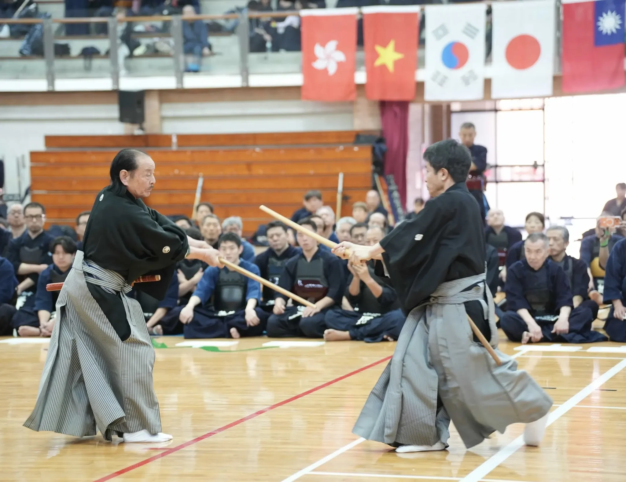 台灣劍道聯盟會長陳信寰老師表示,劍道國際城市交流大會已辦理逾20載,本次開幕典禮選手宣誓代表為去年個人賽男子B組冠軍獨臂劍王菊池雅樹,後續回日本參加全日本50歲組武道大會也再度奪魁,以好運連連加持給選手們提升士氣,他強調「持續的練習就是致勝的秘訣」,其單臂揮劍的身影被視為日本武道精神「交劍知愛、一期一會」的具體實踐。大會除有高水準的精彩劍道賽事,更有難得一見的「柳生制剛流」,是極少數可以被稱之為「將軍之劍」的劍術流派,從江戶時代流傳至今令和年代,由劍道教士七段的石黑峰司表演,展現日本武道文化之傳承及藝術價值。展現日本武道文化之傳承及藝術價值!