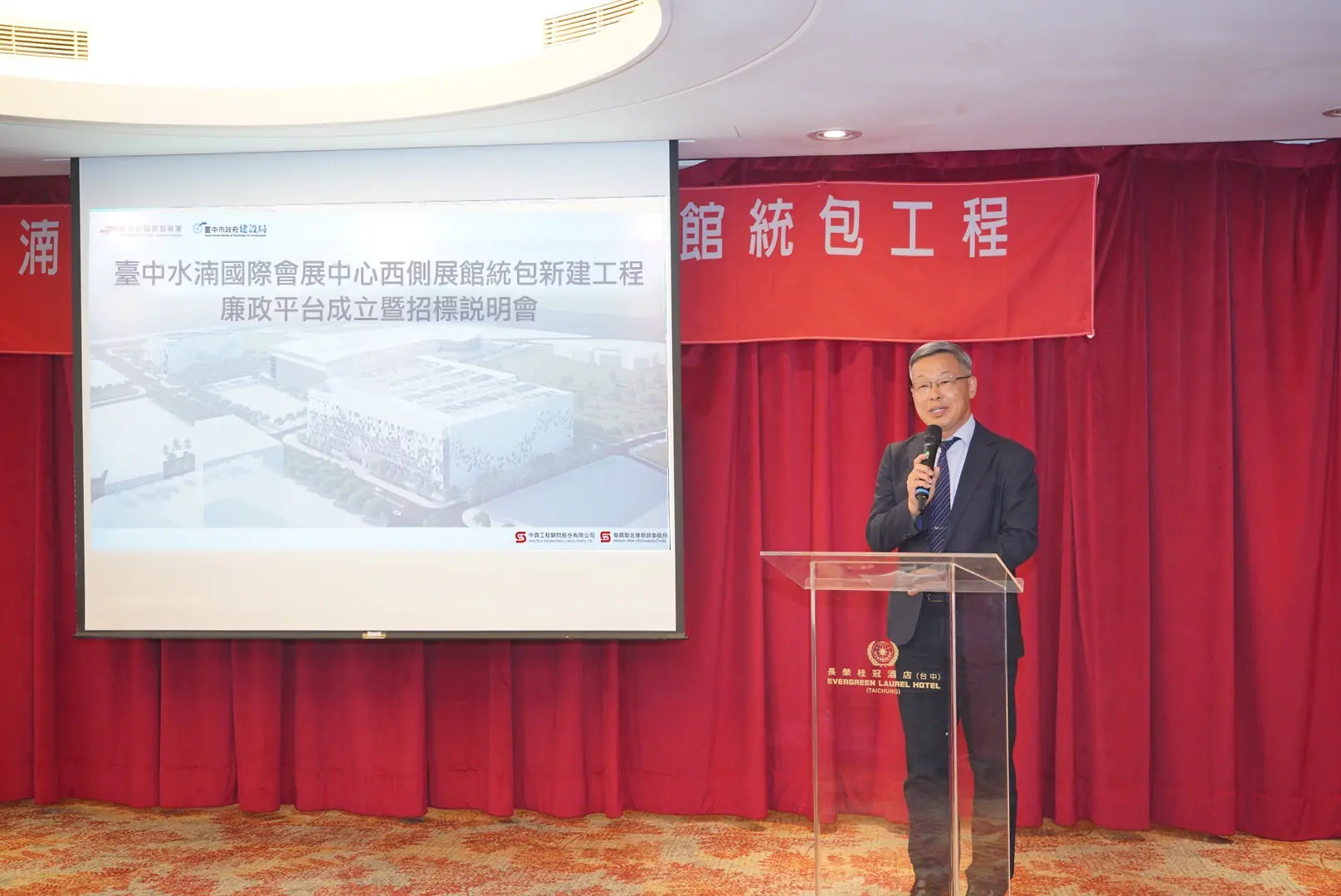 「台中國際會展中心西側展館統包工程」邁入公開閱覽關鍵階段!台中市長盧秀燕重視「廉能透明」施政理念,積極推動重大建設廉能治理,市府建設局昨(23)日舉辦工程招標說明會,並同步宣示成立廉政平台,結合檢、廉、調、審計機關及民間團體力量,透過跨域合作與公開透明機制,確保工程如期如質推動,打造全台最大規模的國際級會展新地標。