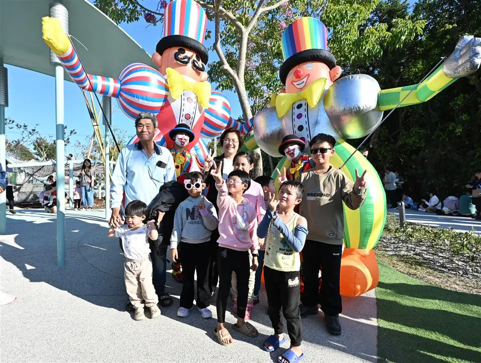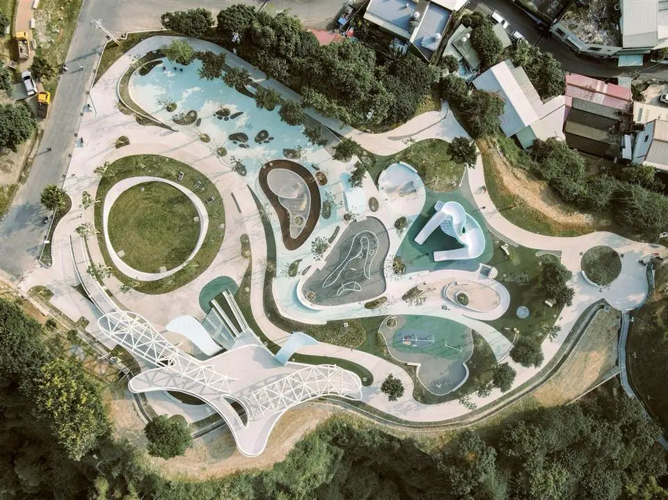 園區設置雲之溜滑梯、飄浮繩網、無障礙沙坑、親子鞦韆區、青銀共融廣場與天空草原等多元設施,並導入性別友善景觀廁所與夜間光環境設計,讓遊戲場不僅是親子樂園,更成為兼具藝術美感與公共關懷的城市新節點。設計強調「共融的日常美學」,兼顧不同年齡層需求,使孩童、長者及行動不便者共享空間;同時透過參與式設計與跨域整合,讓公共場域成為凝聚城市情感與生活記憶的舒適庭院。
