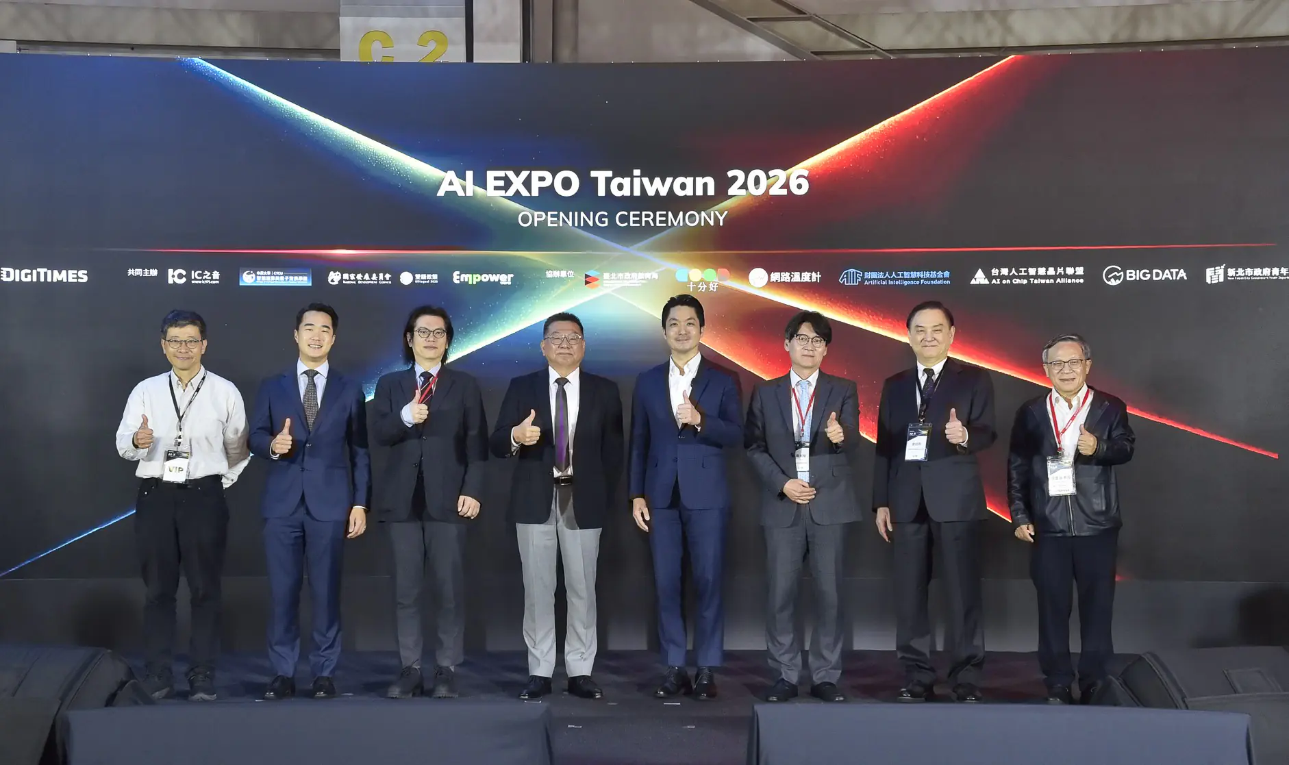 AI EXPO Taiwan 2026以「AI.X」為核心主軸,對接國家「AI新十大建設」,吸引國家級研發單位、產業代表與專業人士超過萬人齊聚一堂。開幕儀式由產官學代表共同啟動,包括台北市長蔣萬安、國科會副主委陳炳宇、鈺創科技董事長盧超群、多位駐外代表處代表,以及中原大學量子資訊中心主任張慶瑞等人主持。