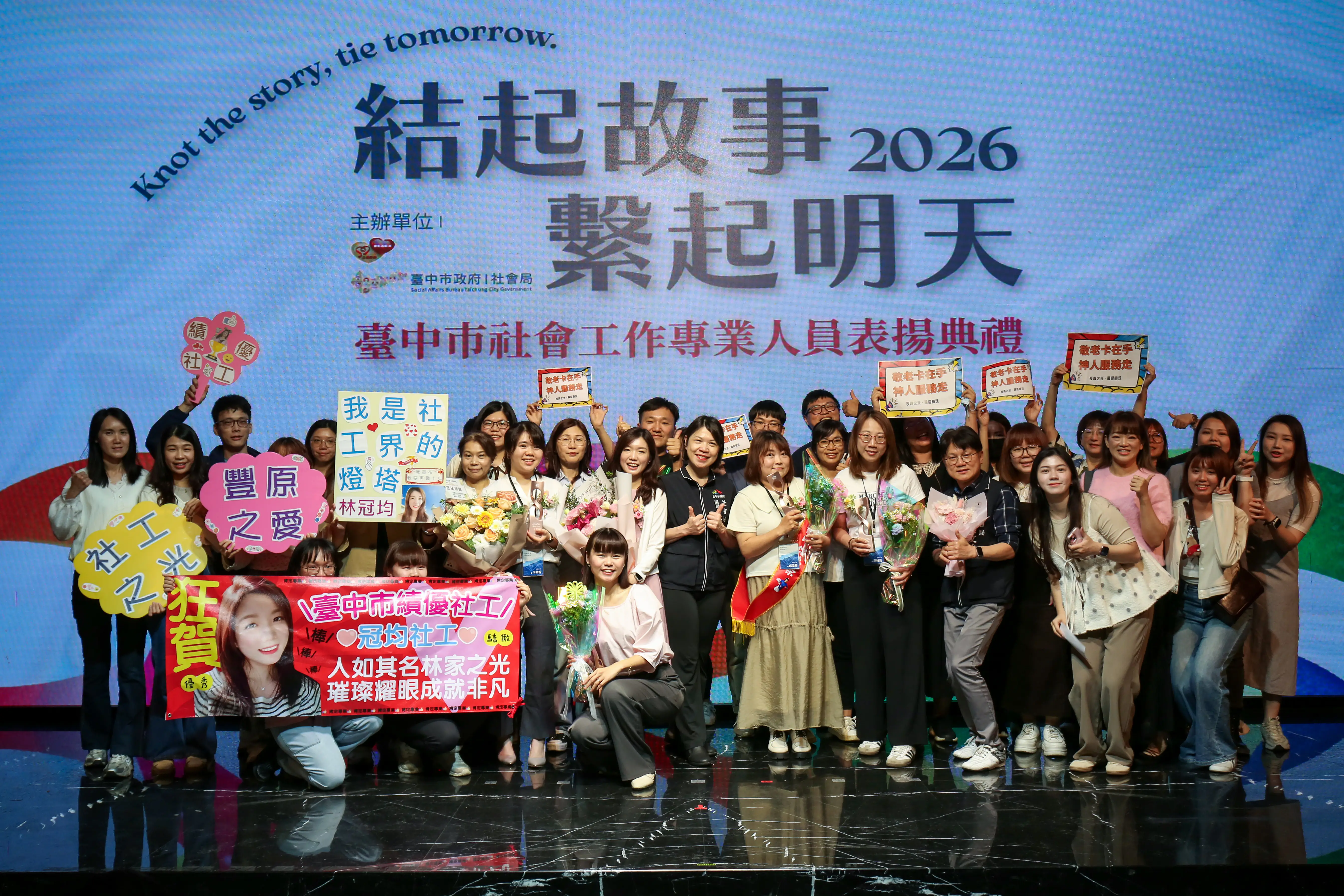 為響應4 月2日台灣社工日,台中市政府社會局今(27)日舉辦「台中市社會工作專業人員表揚典禮」,表揚58位優秀社工及3家執業安全成效優良的社福團體。社會局副局長林資芮感謝不同領域的社工夥伴們,以專業評估需求、耐心陪伴家庭及行動守護弱勢,在各個角落編織出綿密而溫暖的社會安全網,也讓台中成為更有溫度的城市。