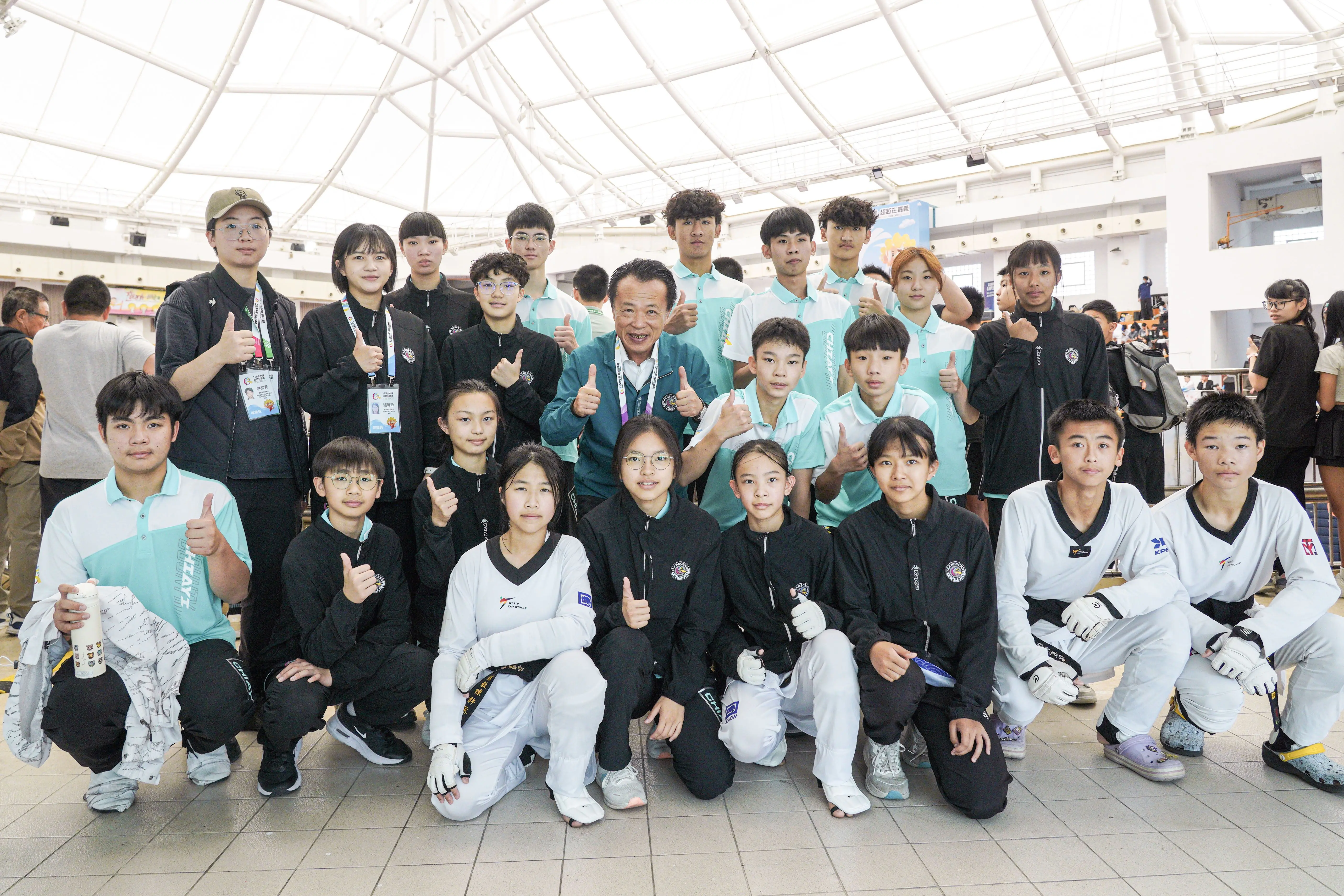 翁章梁今日也前往休息區向選手與家長加油打氣,表達地主嘉義縣的歡迎之意,鼓勵大家在賽事中盡情展現自我。