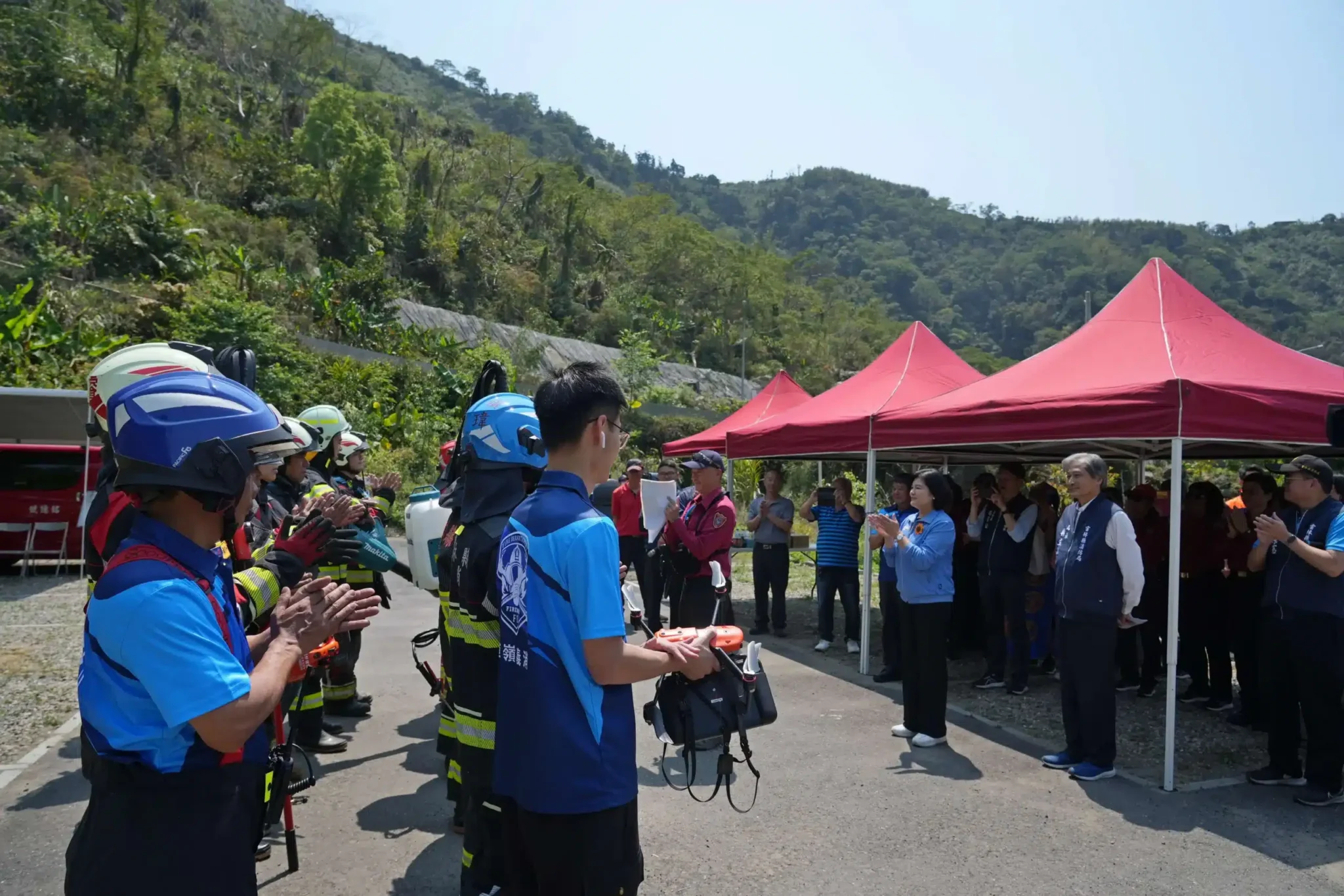 張縣長進一步指出,為強化救災量能,縣府編列100萬元追加預算,協助消防局添購高壓噴霧機、高壓軟管、打火把及繩索勾環等裝備,因應草嶺及石壁地區地形需求,提升第一線人員作業安全與效率。
