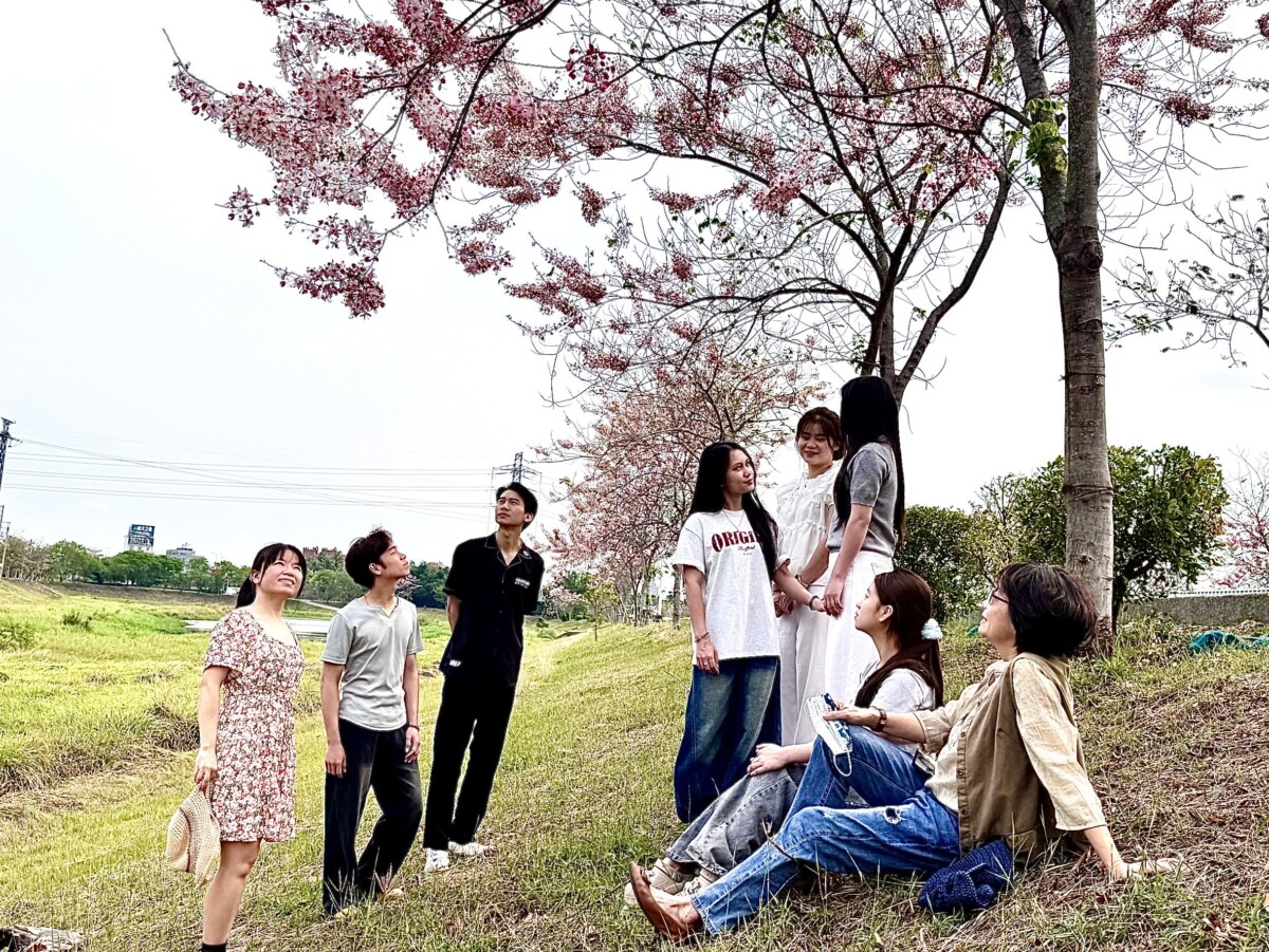 中華醫大與仁德滯洪池相鄰,師生自願擔起即時花況的分享任務,緊盯仁德滯洪池花旗木花開的時程。得知滯洪池的花旗木已爆開,師生利用下課或放學時間,相偕前往賞花,看著串串粉紅花朵迎風搖曳,美麗的花景為大家帶來身心療癒,一路拍照一路閒話家常,大家開心不已。