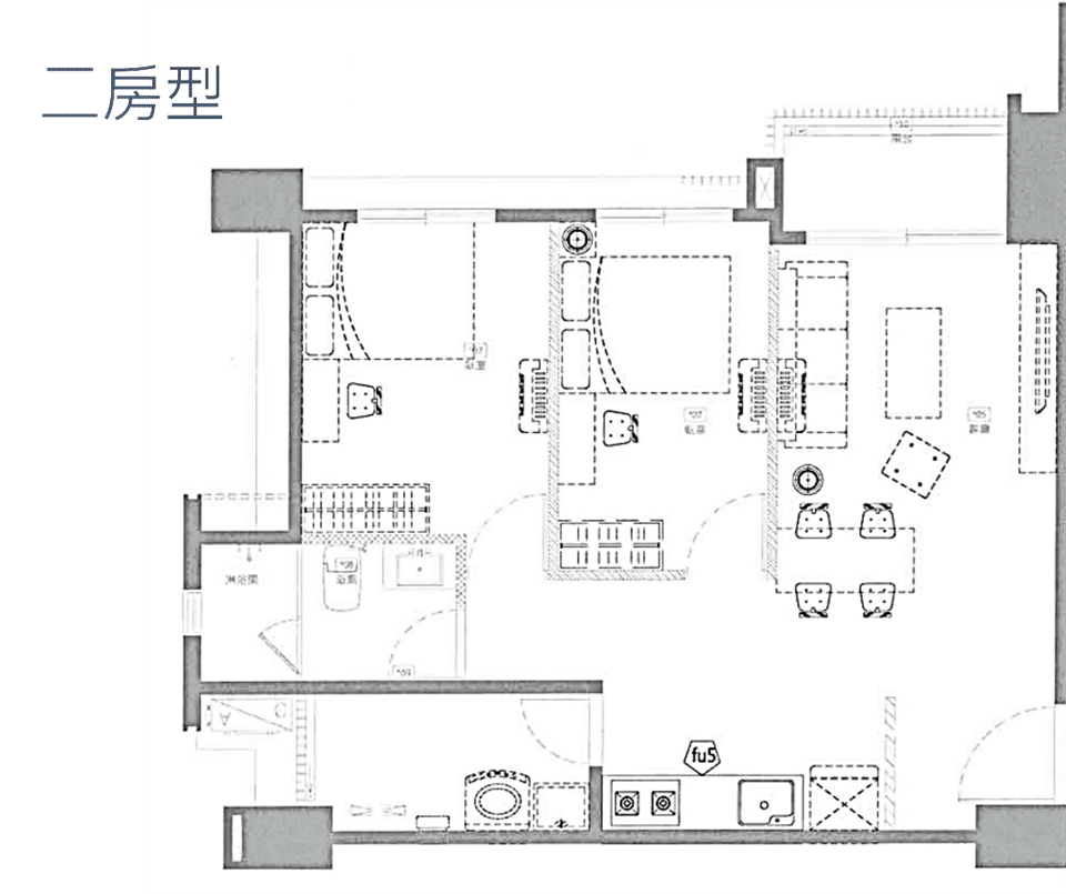 2.二房型每戶約 28.75 坪,2房2廳1衛(28 戶)。