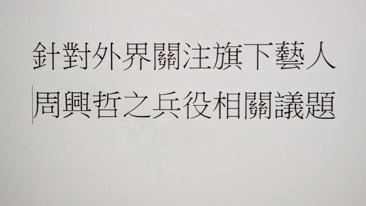 針對外界關注旗下藝人周興哲之兵役相關議題,星空飛騰國際娛樂在此說明如下: