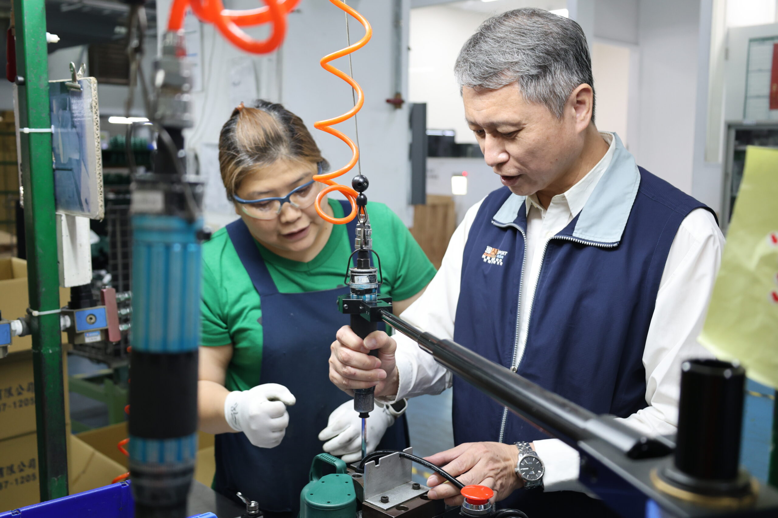勞工局長陳瑞嘉實地參訪榮獲金質認證的「台灣卓勒股份有限公司」。(新北市勞工局提供)
