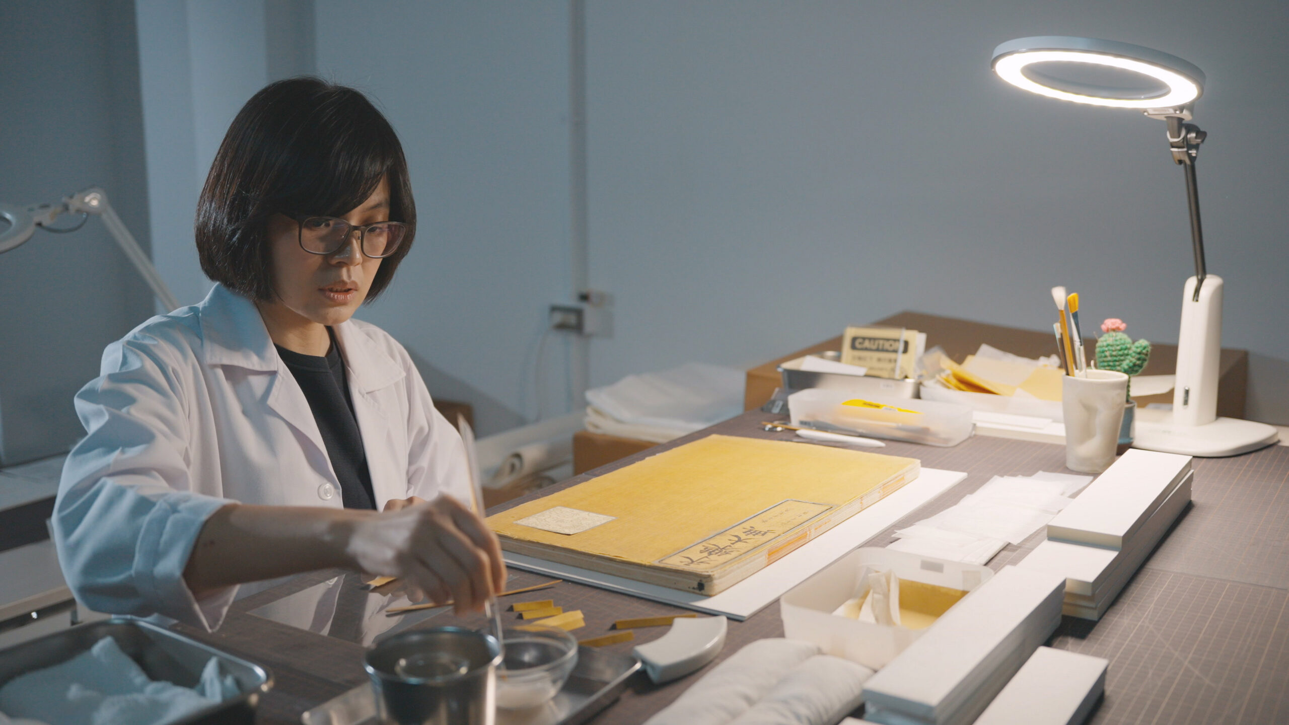 故宮文物能歷經千年流傳至今,背後仰賴的是細膩而繁複的修復工藝。圖書文獻修復師高宜君分享,修復工作不只是技術,更是一場與前人對話的過程。她以甫修復的《孟子註疏解經》書皮為例說明,黃色蠟箋紙並非單純染色,而是歷經多道工序、多人協作完成的藝術品。為了最大程度保留文物原貌,修復師甚至親手將麵粉與水熬煮成漿糊作為黏著的材料,怕市售膠水中的防腐劑,破壞文物樣貌和價值。