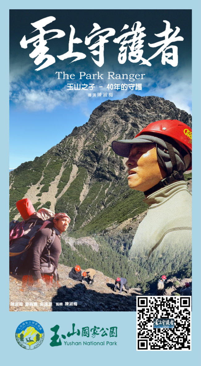 《雲上守護者》影片(QRcode)記錄保育巡查員方有水,分享40年山難救援及步道維護等實況(玉管處提供)