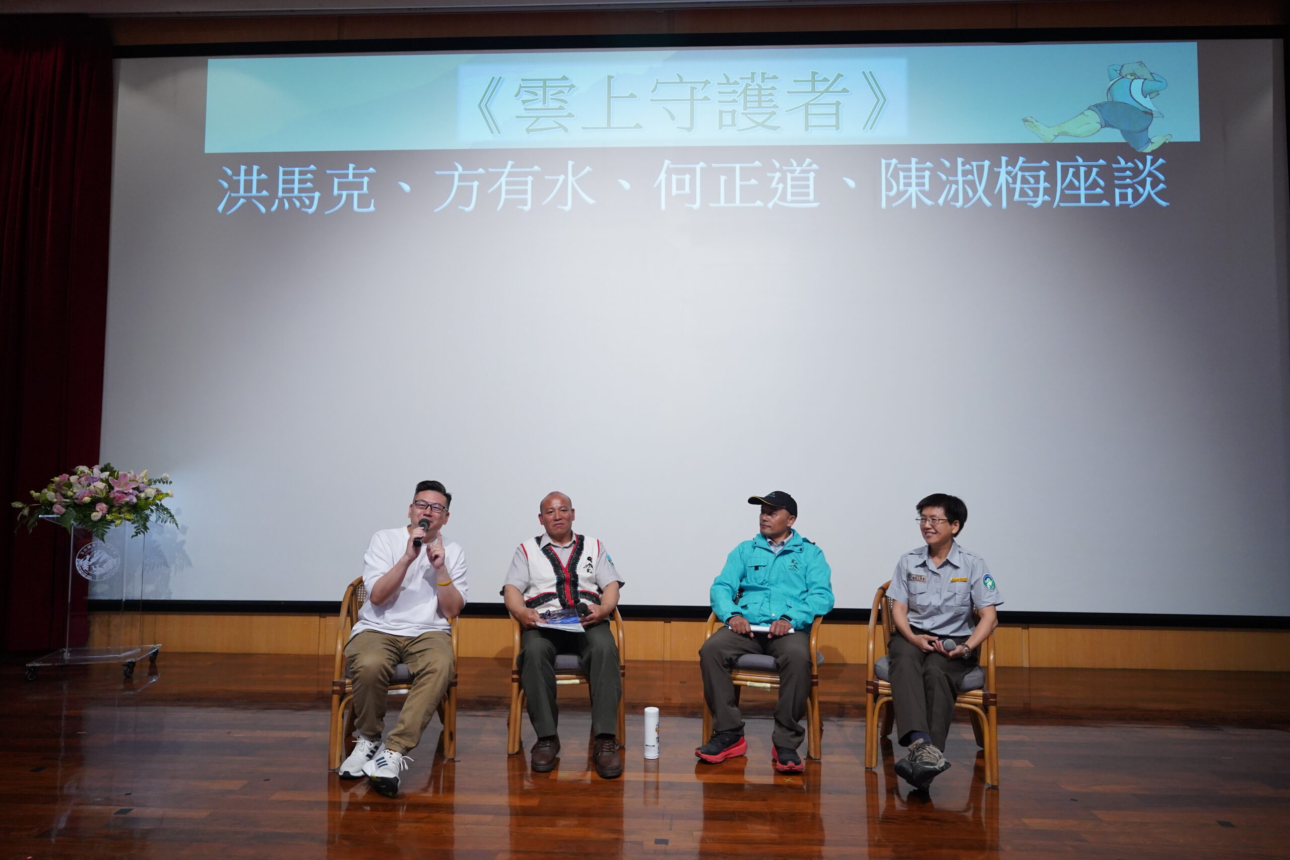《雲上守護者》巡山員影片座談(左起洪馬克導演、方有水、何正道、陳淑梅 玉管處提供)