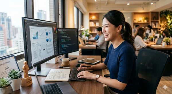 但慢慢地,她開始接案、學新技能、嘗試不同的工作方式。