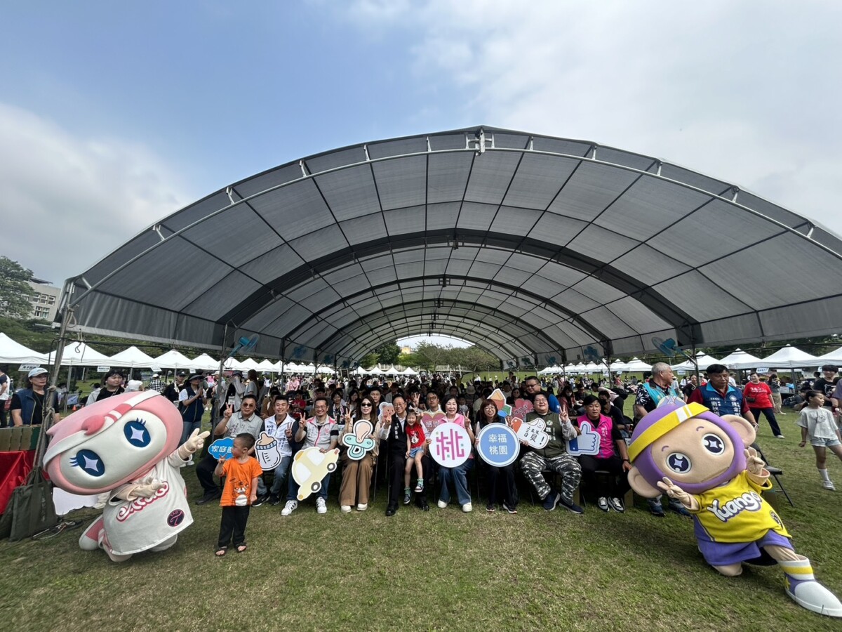 桃園市長張善政今(11)日下午前往平鎮區,出席「2026 SPRING RURAL CARNIVAL 春日田園嘉年華」。張市長表示,去年活動於北桃園深獲好評,今年特別移師平鎮新勢公園,集結全市25個親子館及復興區行動親子車能量,並整合客家局、消防局、平鎮區農會等跨局處資源,讓家長與孩子透過田園體驗增進互動與合作默契,共享溫馨的親子時光。