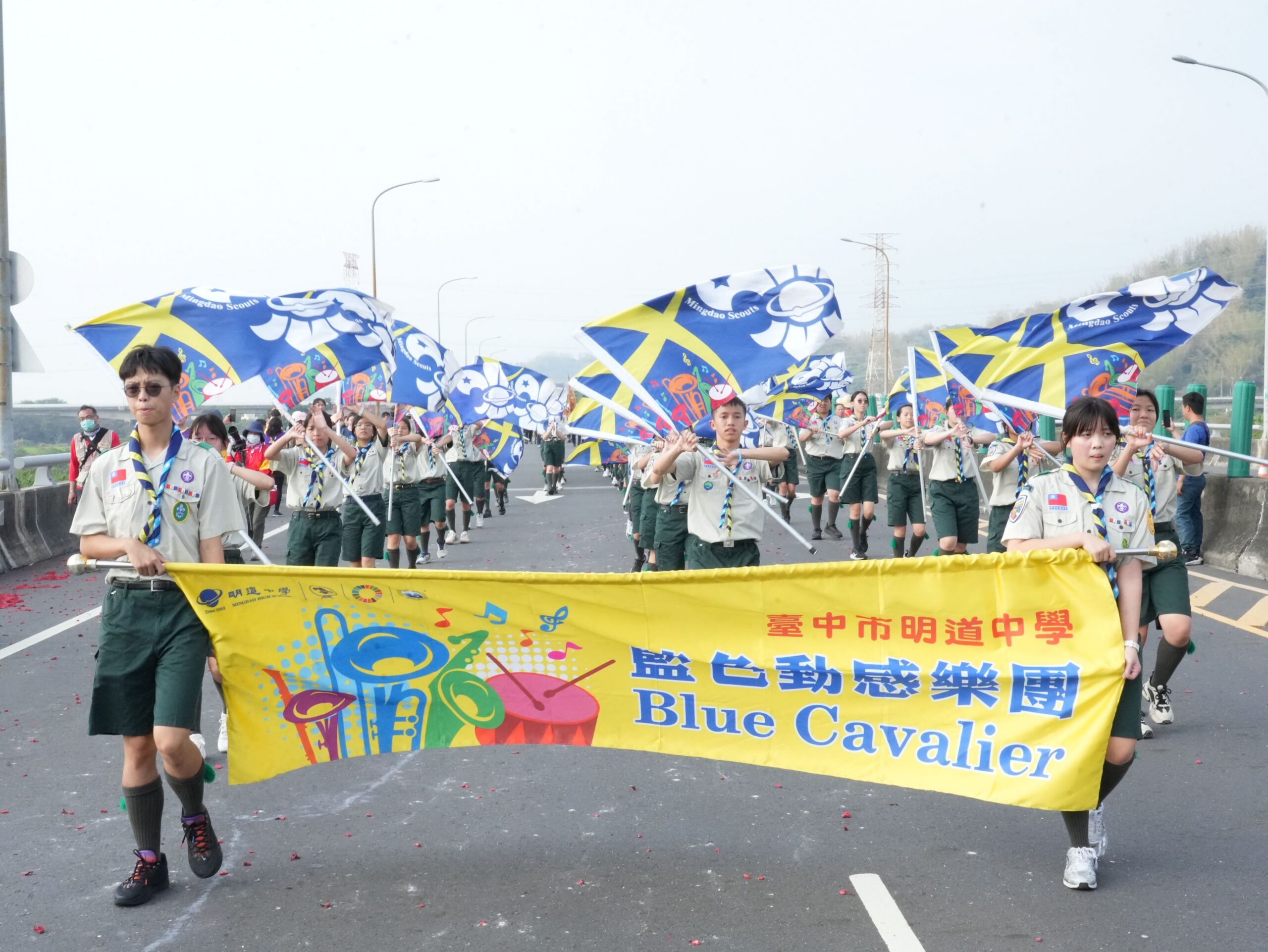 今年活動另一大亮點,是首度邀請台中在地名校明道中學「藍色動感樂團」參與遶境演出。民政局提到,「藍色動感樂團」為一支融合童軍精神的戶外行進樂團,曾受邀前往總統府及嘉義市國際管樂節演出,專業表現備受肯定。此次首度加入遶境會香隊伍,以節奏鮮明的打擊樂演出及整齊劃一的旗舞展現青春活力,為傳統宗教儀式注入嶄新能量,也讓民眾看見信仰文化與青年世代交會出的動人火花。