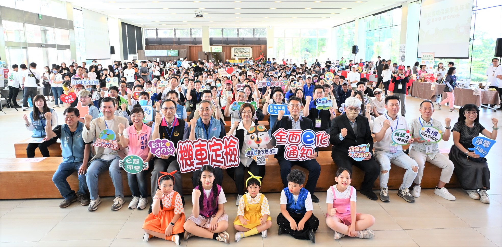 為響應國家2050淨零排放政策,彰化縣政府與成美文化園、頂新和德文教基金會、彰化縣機車商業同業公會、臺灣智慧移動產業協會等單位合作,於今(12)日上午在成美文化園舉辦「彰化縣環保淨零嘉年華 e起淨零彰化GO好」活動,吸引逾千名親子熱情參與。彰化縣長王惠美與現場貴賓,一同攜手大小朋友投入淨零轉型行動,展現全民參與的行動力。王縣長表示,落實環保從你我做起,從「食、衣、住、行、育、樂」等方面著手;同時預告彰化縣將自116年起全面推動機車定檢e化通知,取代紙本明信片,進一步落實無紙化與智慧治理。