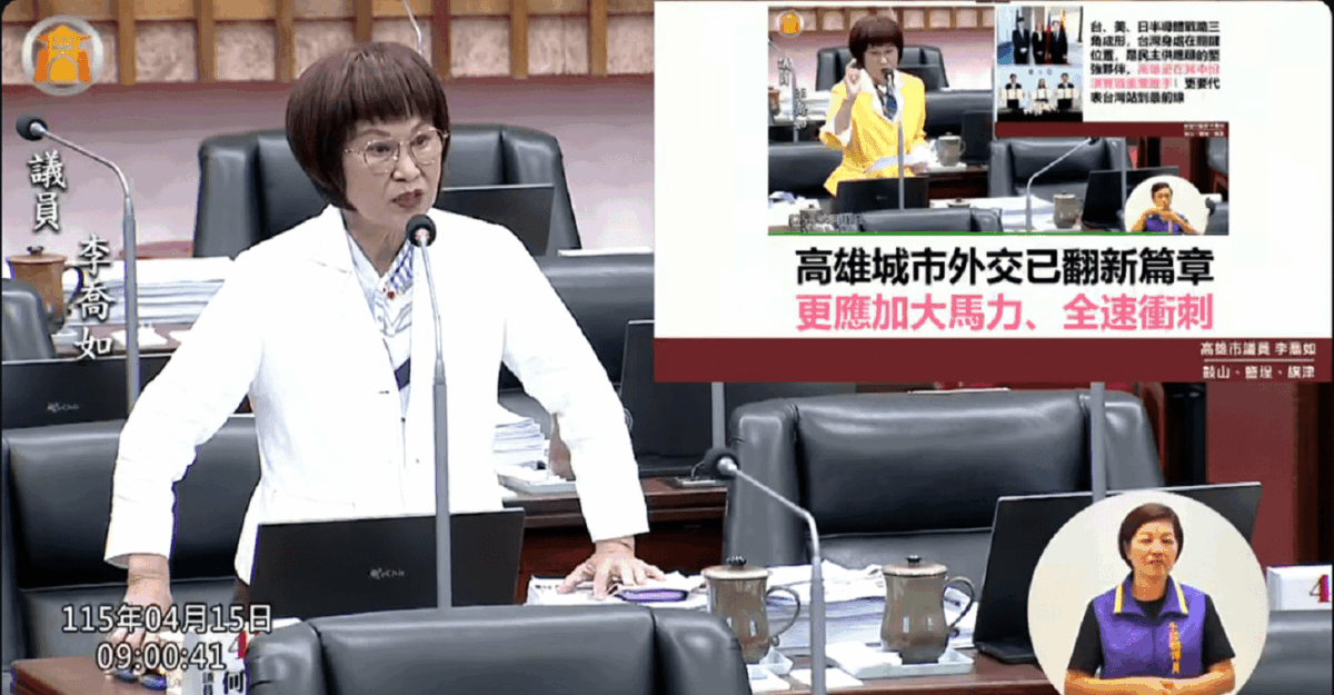 在高雄產業轉型與國際能見度同步攀升之際,城市外交布局也被推上政策檯面。高雄市議員李喬如4月15日於議會民政部門質詢時指出,高雄正處於邁向國際城市的關鍵節點,市府應加速制度升級與人才培育,全面強化城市外交戰略,為未來發展奠定基礎。