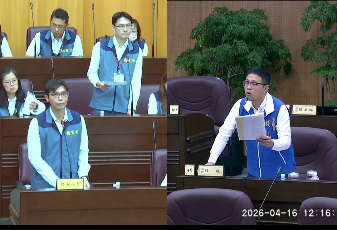 在兒童與青少年運動政策方面,錢龍議員指出現行學校游泳課程時數有限,易造成學習落差,呼籲市府應整合國民運動中心與校園資源,研議提供兒童游泳訓練補助或公益時段,落實運動平權,避免因家庭資源差異影響學習機會。