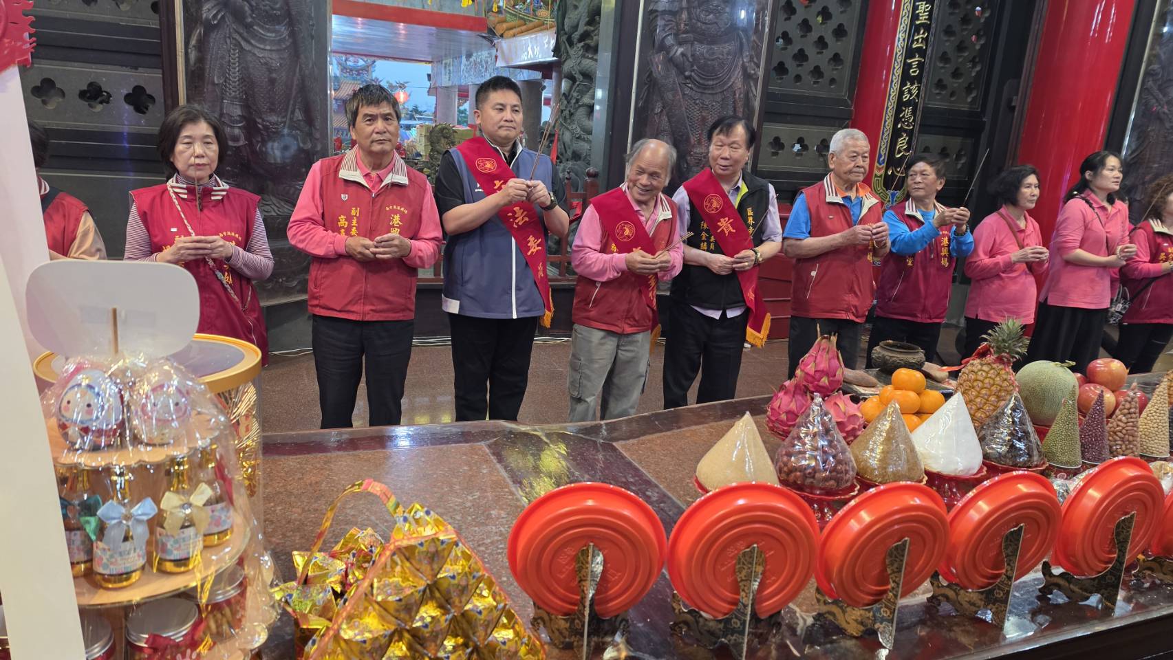 國民黨宜蘭縣長參選人吳宗憲、蘇澳鎮長參選人陳金麟,與南方澳港興媽由蔡連發主委帶領祝壽團參加大坑罟玄天廟及港邊里永安宮祝壽大典。