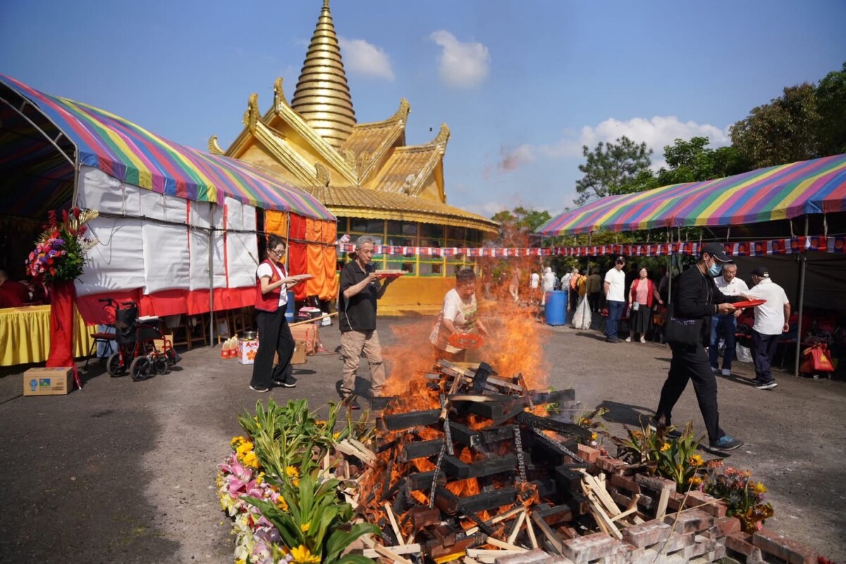 法會現場可見,僧眾持誦儀軌,信眾雙手合十、神情專注;有人為家人祈福,有人為健康發願,也有人為世界局勢動盪、社會不安而默默祝禱。火焰在風中搖曳,卻也像一種堅定的象徵—強烈的生命力被瞬間點燃。